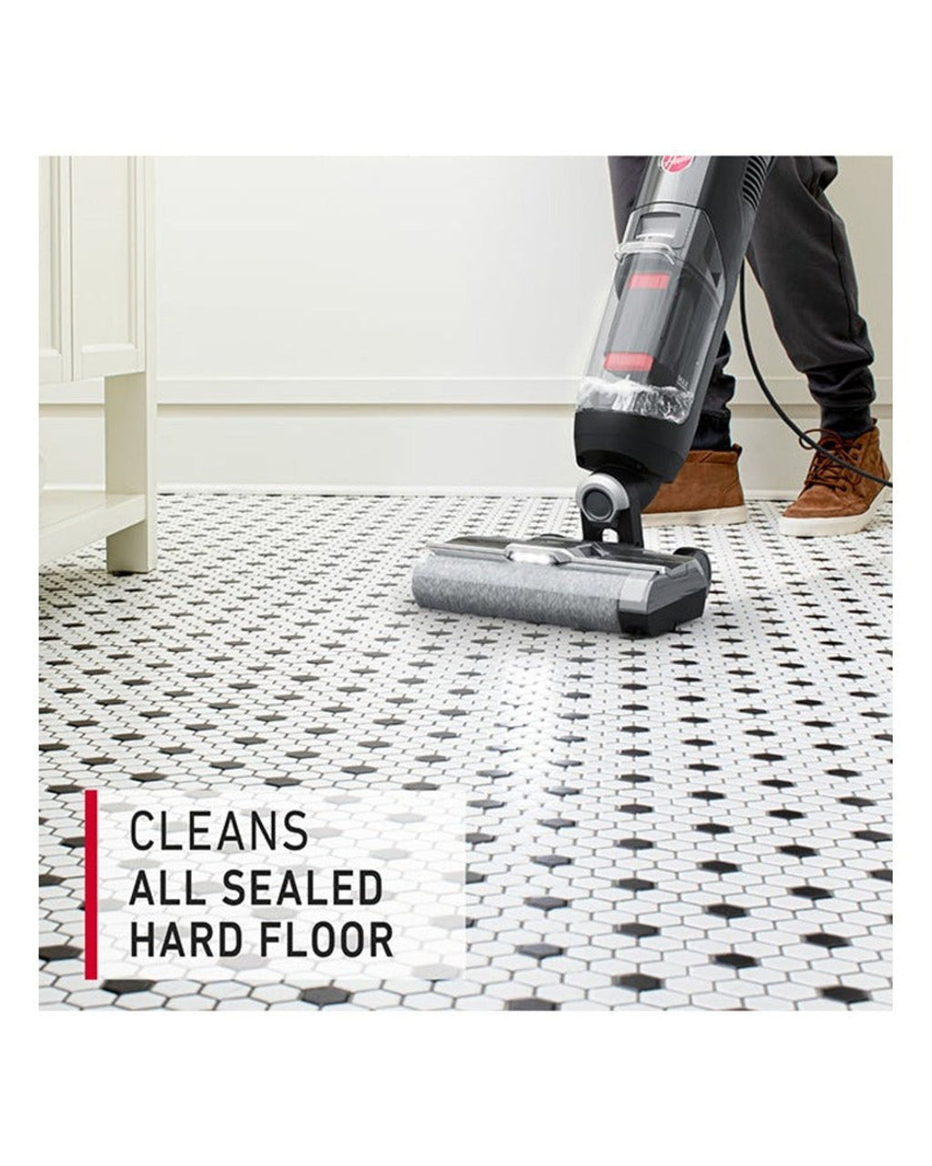 تابع كل انسكاب أو حادث يقع في منزلك. يغسل هوفر ستريملاين، ويكنس، ويجفف أرضياتك الصلبة، ويقضي على ما يصل إلى 99% من البكتيريا في خطوة واحدة. يترك الأرضيات نظيفة وصحية وذات رائحة منعشة، خفيف الوزن وسهل الاستخدام. أدوات التحكم الإضافية بلمسة إصبع، وشاشة LCD، وإضاءة LED.