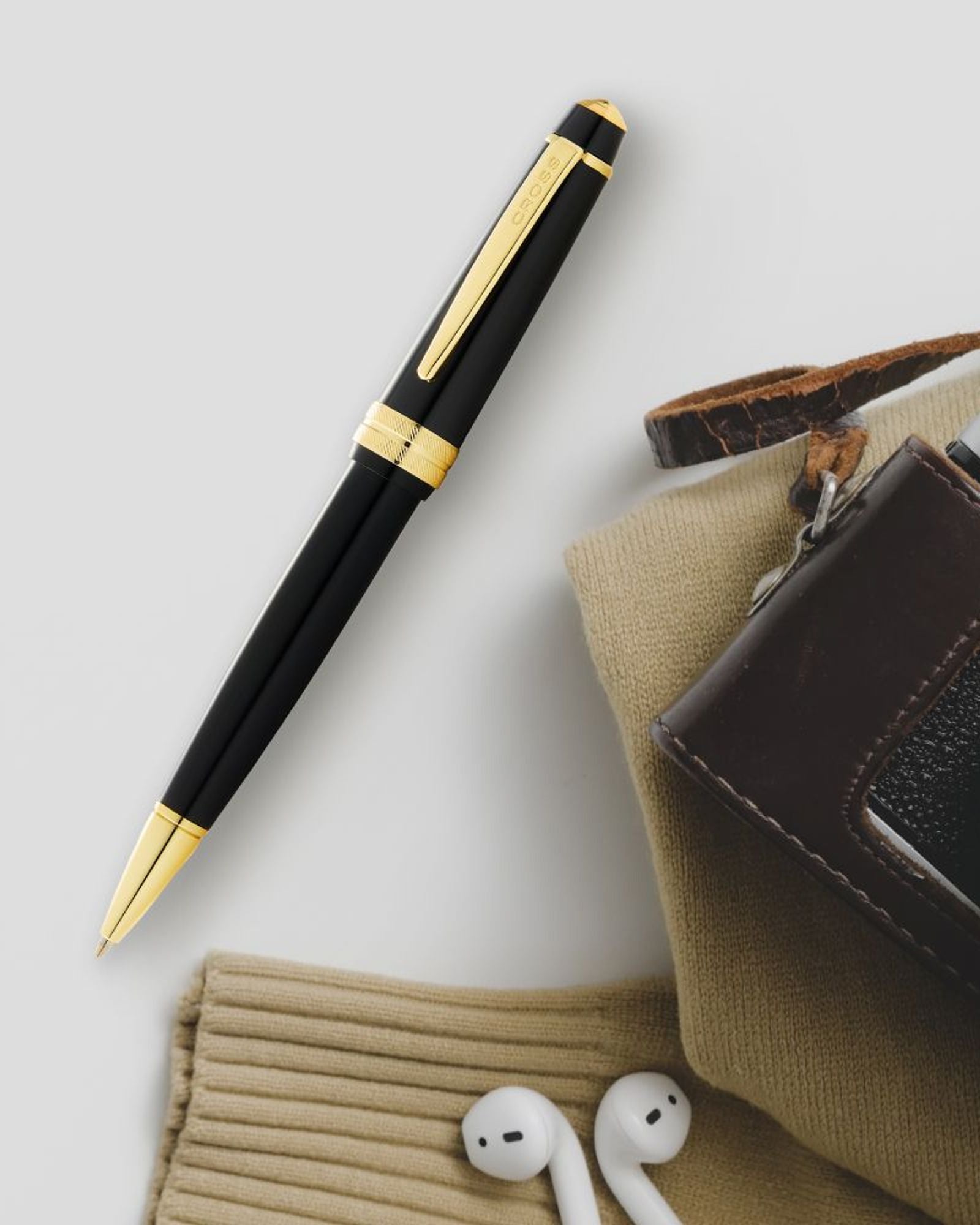 قلم حبر جاف Cross Bailey Light™ من الراتنج الأسود المصقول واللون الذهبي AT0742-9