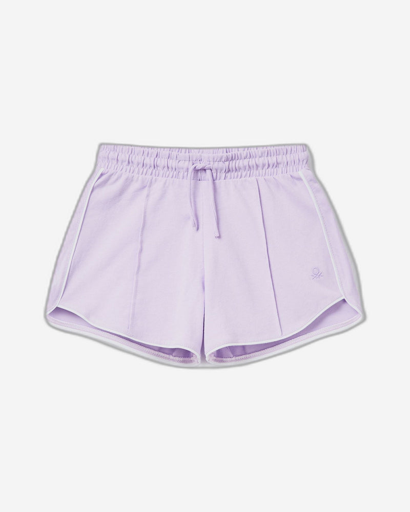 شورت من القطن الخالص بخطوط متداخلة. خصر عادي برباط، وشعار مطرز في الأسفل. درزات أمامية بتصميم متجعد، وجزء سفلي مستدير بفتحات جانبية. مثالي للارتداء في أي يوم من أيام الأسبوع، لإطلالة مريحة ورياضية.
