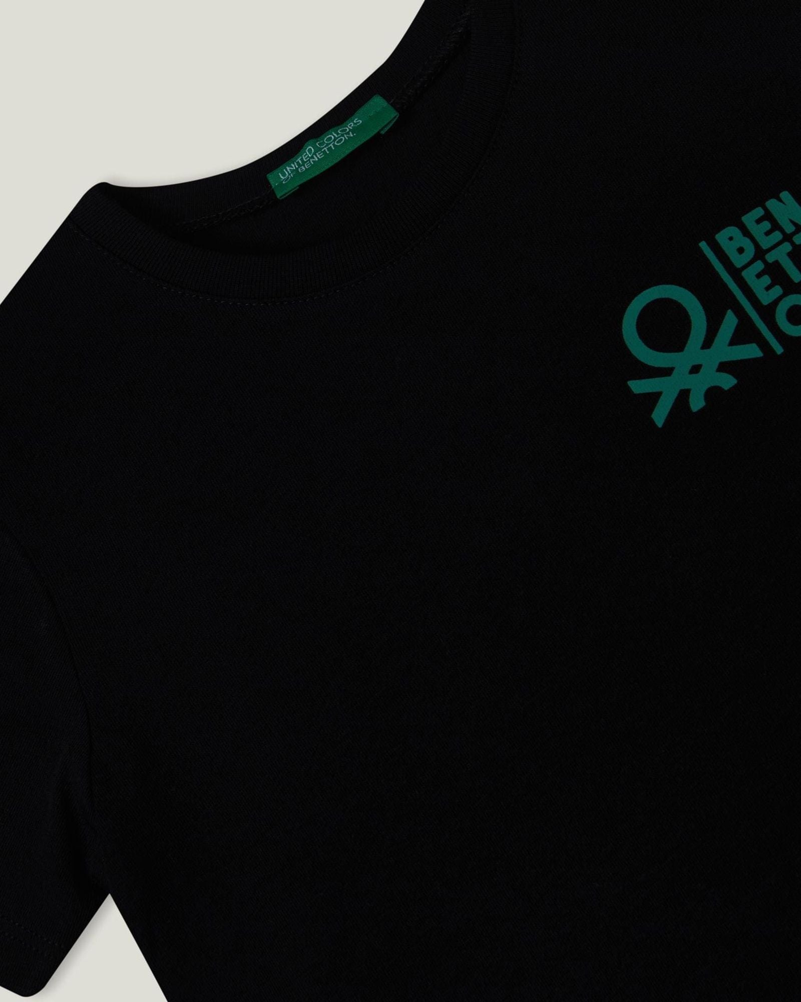 تيشيرت قطني خالص بأكمام قصيرة وياقة دائرية. قصة عادية وشعار مطبوع على الجهة الأمامية. مثالي للارتداء اليومي.