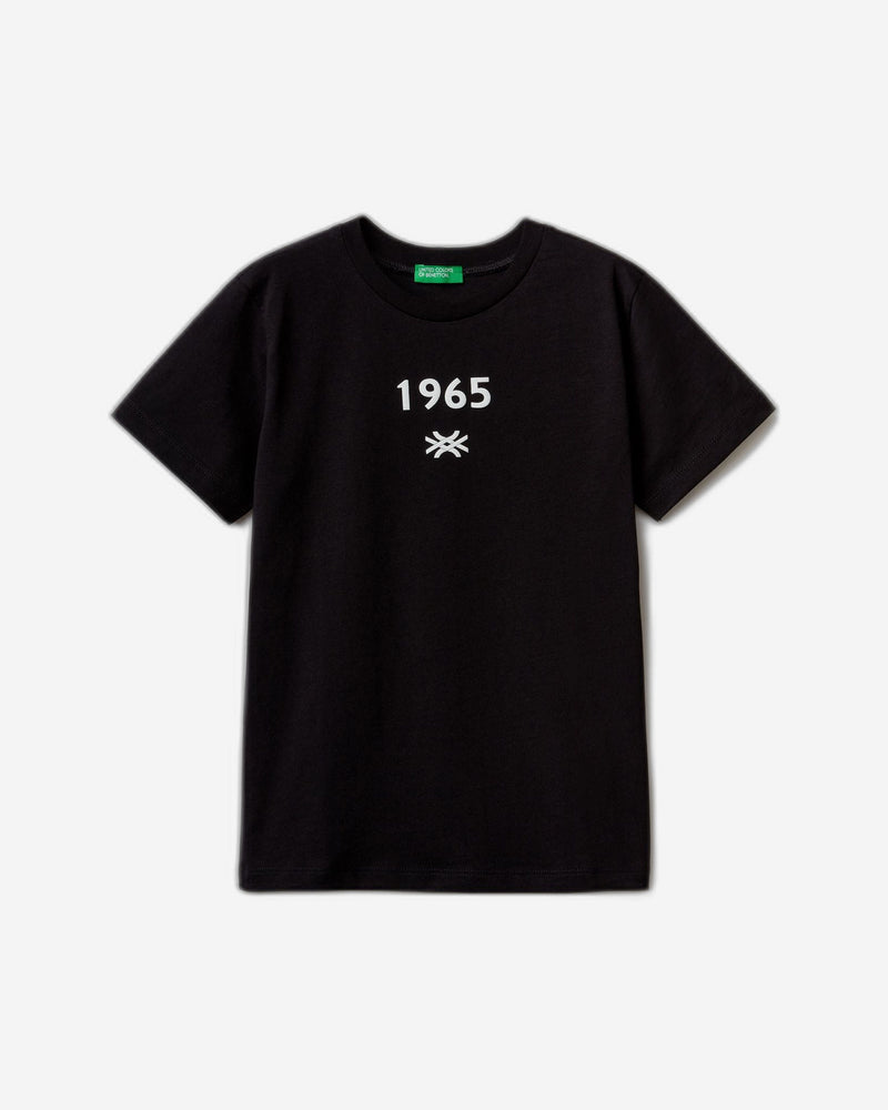 تيشيرت بياقة دائرية وأكمام قصيرة من القطن العضوي الخالص. طبعة أمامية بشعار بارز. لإطلالة يومية مريحة.