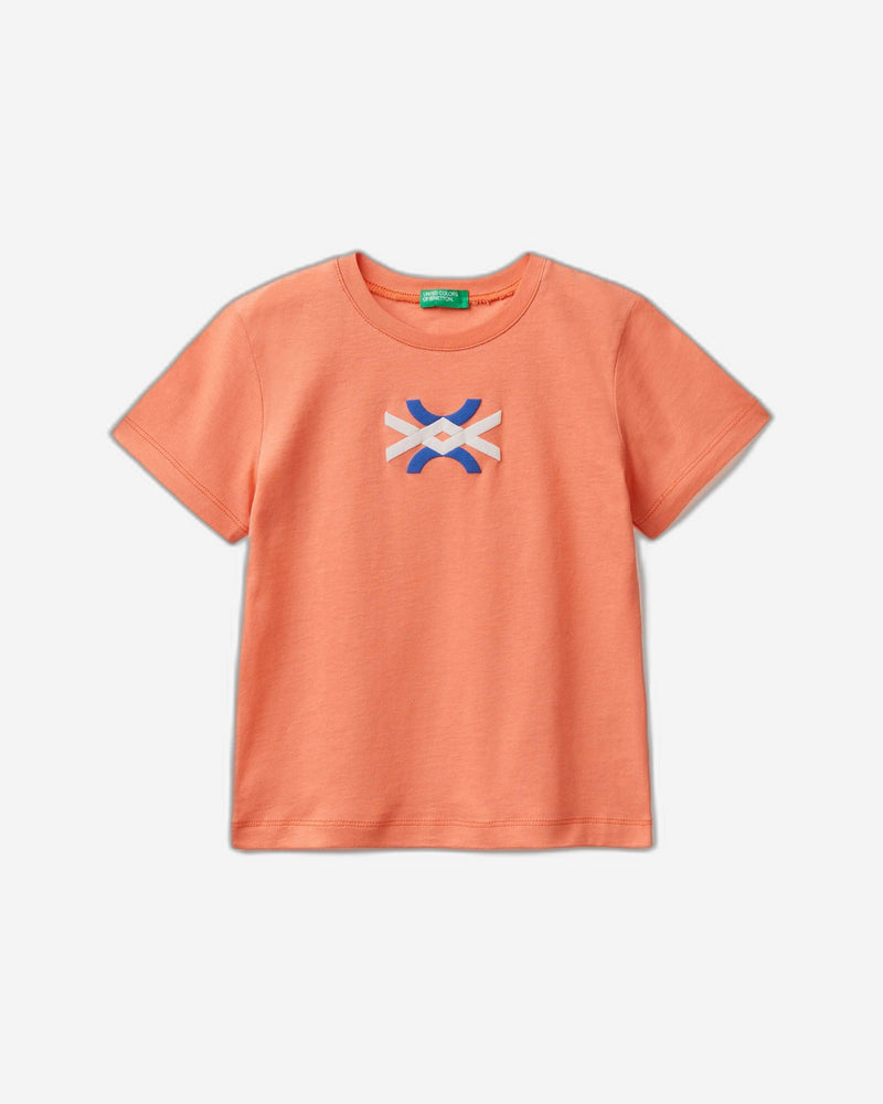 تيشيرت بياقة دائرية وأكمام قصيرة من القطن العضوي الخالص. طبعة أمامية بشعار بارز. لإطلالة يومية مريحة.