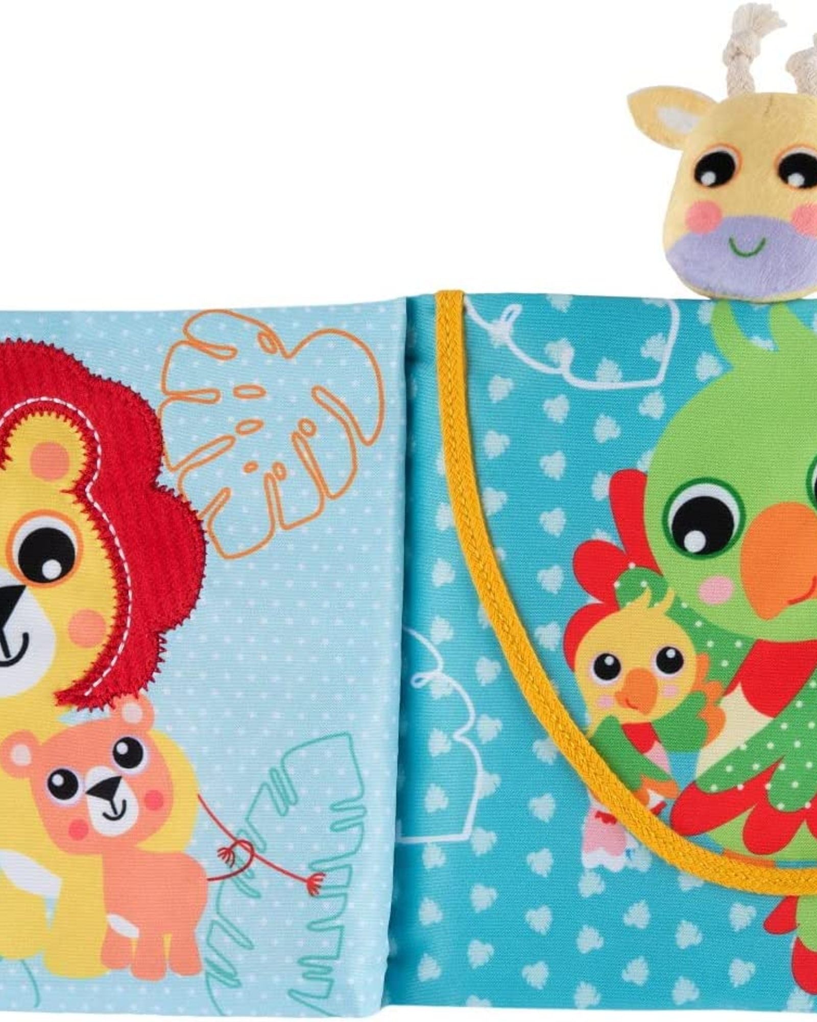 كتاب نسيجي ملون مع حيوانات وصغارها، لتحفيز التفاعل بين الوالدين والطفل، حيث أن الزرافة عبارة عن دمية.