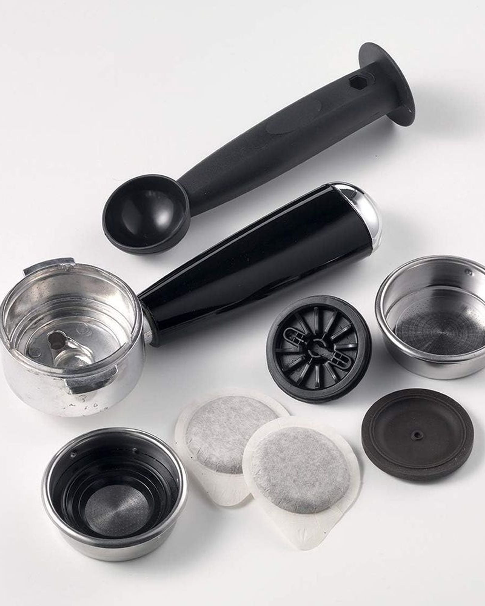 آلة صنع قهوة الإسبريسو من أرييتي مزودة بنظام قوي بقوة 850 واط، وتعمل بضغط 15 بار، مما يضمن عملية تخمير فعّالة. كما أنها مزودة بخافق حليب لتحضير مشروبات قهوة كريمية ولذيذة. تتميز الآلة بمقياس ضغط لمراقبة الضغط، وإيقاف تشغيل تلقائي بعد فترة من عدم الاستخدام، ونظام ثيرموكريم لقهوة كريمية. كما أنها مزودة بفلترين لكوب واحد وكوبين. صُممت آلة صنع الكابتشينو لتستوعب كلاً من القهوة المطحونة وكبسولات ESE، مما يوفر خيارات متعددة للمشروبات. بفضل خزان المياه سعة 0.9 لتر، تُعد خيارًا مثاليًا للمنزل والمكتب، حيث تُقدم كابتشينو لذيذًا بسهولة.