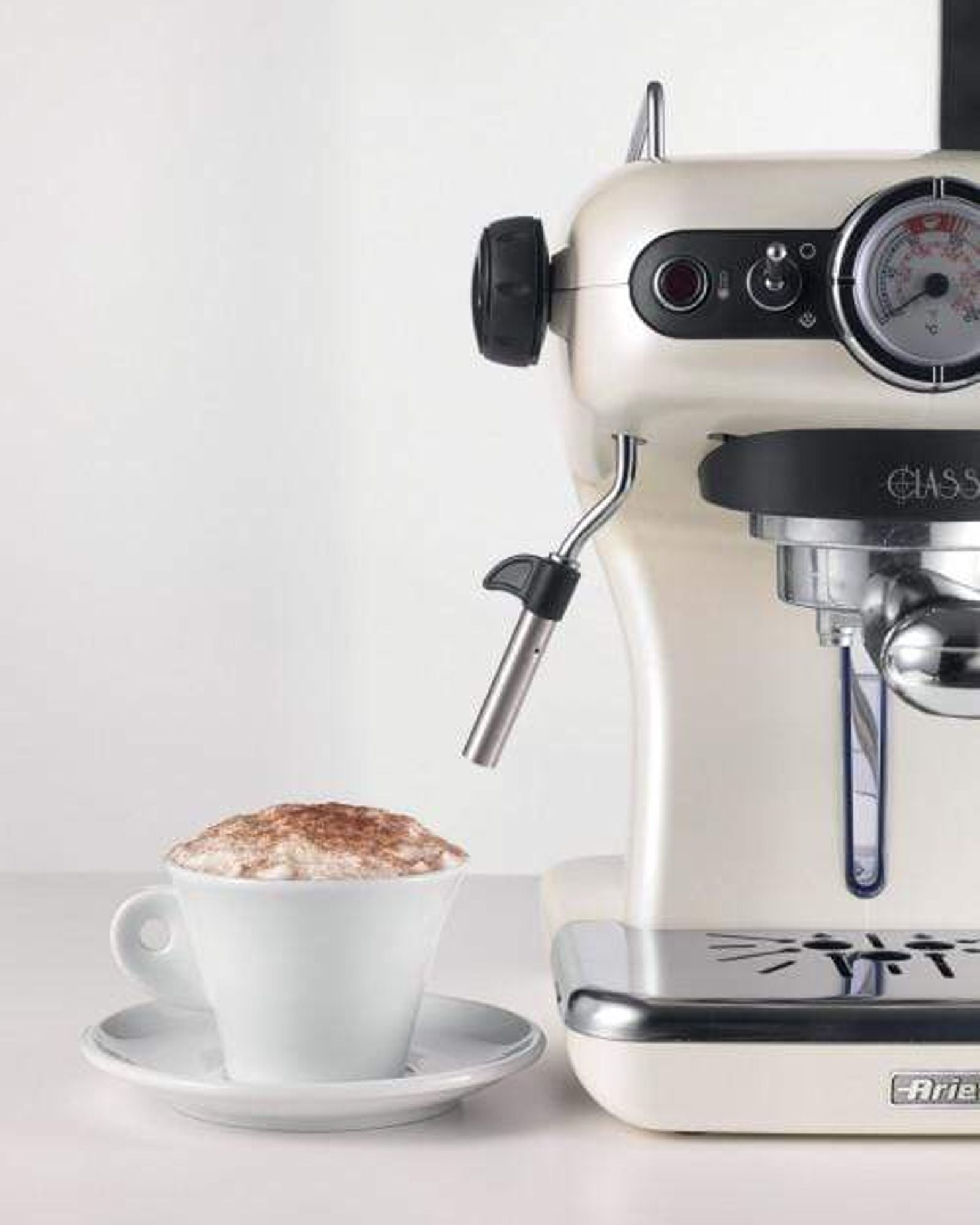 ماكينة إسبريسو أرييتي كلاسيكا بمضخة، لون لؤلؤي 1389A. بفضل خبرتها وأبحاثها، ابتكرت أرييتي مجموعة كلاسيك الجديدة. هذه المجموعة الجديدة من المنتجات الحصرية والقيّمة هي ثمرة مزيج ناجح من التصميم والأناقة والكفاءة والجودة العالية. تناسب مجموعة كلاسيك، بأسلوبها الخالد، أي بيئة منزلية وترضي أرقى الأذواق. تتوفر منتجات مجموعة كلاسيك بثلاثة ألوان: البرونزي والنحاسي والأبيض اللؤلؤي، تناسب البيئات الكلاسيكية والحديثة على حد سواء، مما يضفي لمسة من الأناقة على مطبخك. صُممت ماكينة الإسبريسو، المثالية أيضًا لقهوة الكابتشينو، بتصميمها المعزز بلمسات معدنية، لتكون الإضافة الأساسية لمطبخك. حامل الفلتر متوافق مع كل من كبسولات ومسحوق قهوة ESE، لفنجان أو كوبين.