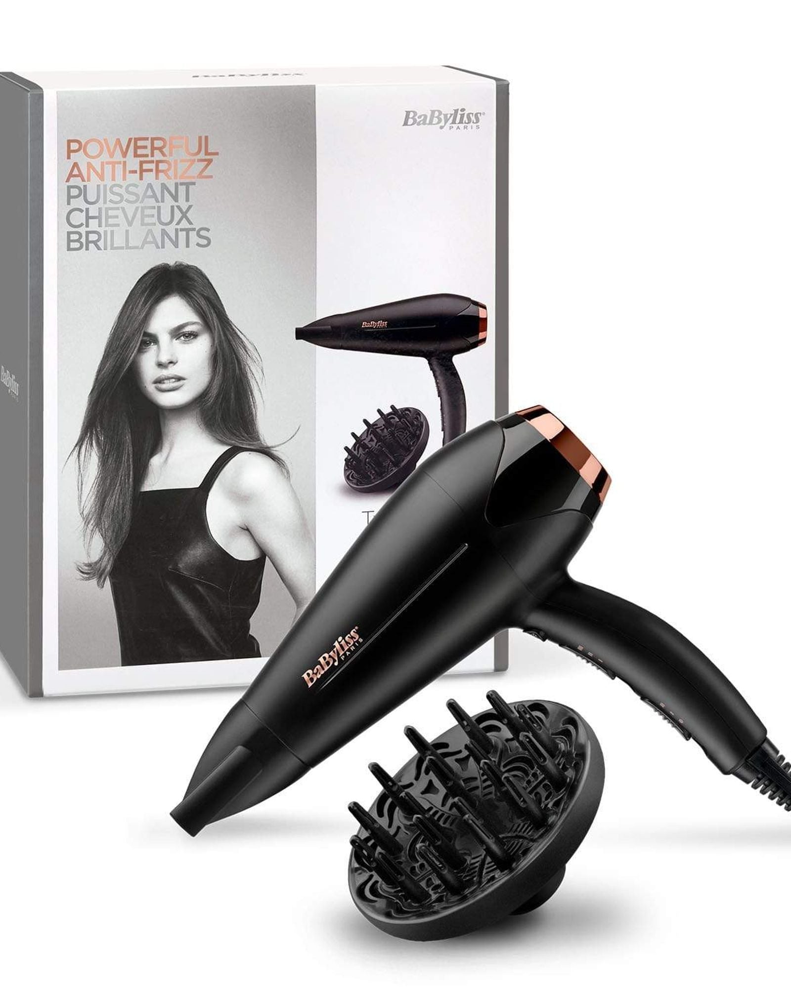 مجفف شعر بيبي ليس بمحرك تيار مستمر، 2200 واط، 3 إعدادات للحرارة وسرعتين مع زر تبريد، تقنية أيونية لشعر خالٍ من التجعد، تصميم أسود مريح وخفيف الوزن مع موزع، D570SDE (أسود)