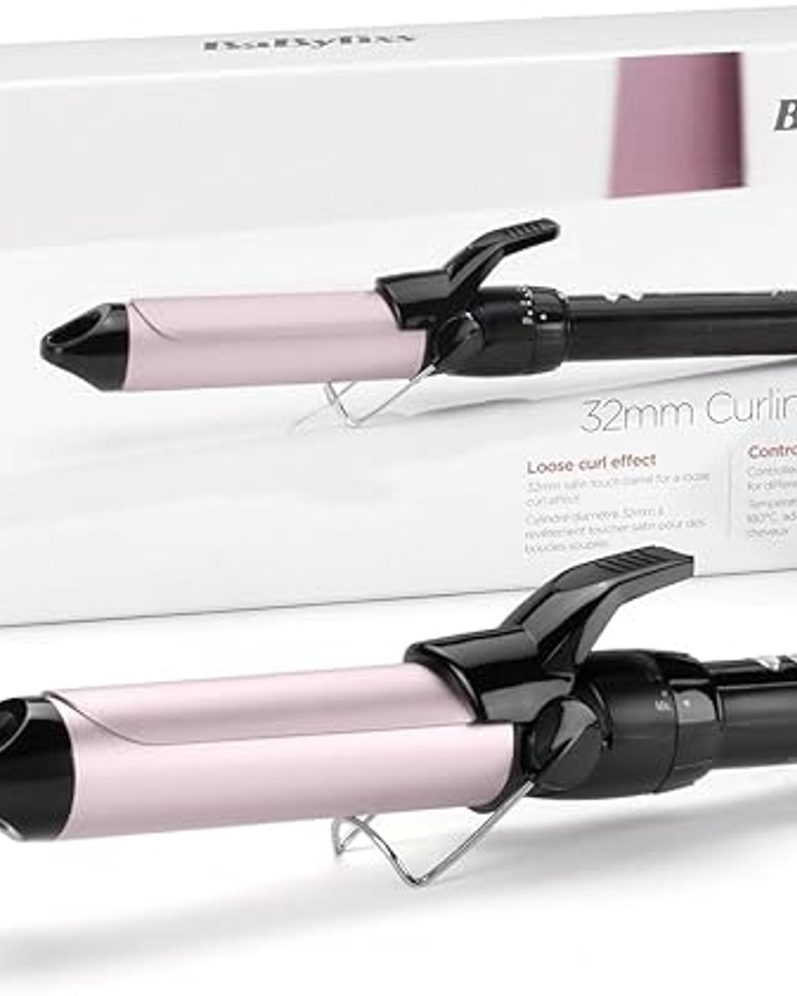مكواة تجعيد الشعر من بيبي ليس، أسطوانة 32 مم لتجعيدات حريرية واسعة، طلاء ساتان ملمس، 10 إعدادات لدرجة الحرارة (110-180 درجة مئوية)، تقنية أيونية لشعر ناعم ولامع - C332SDE