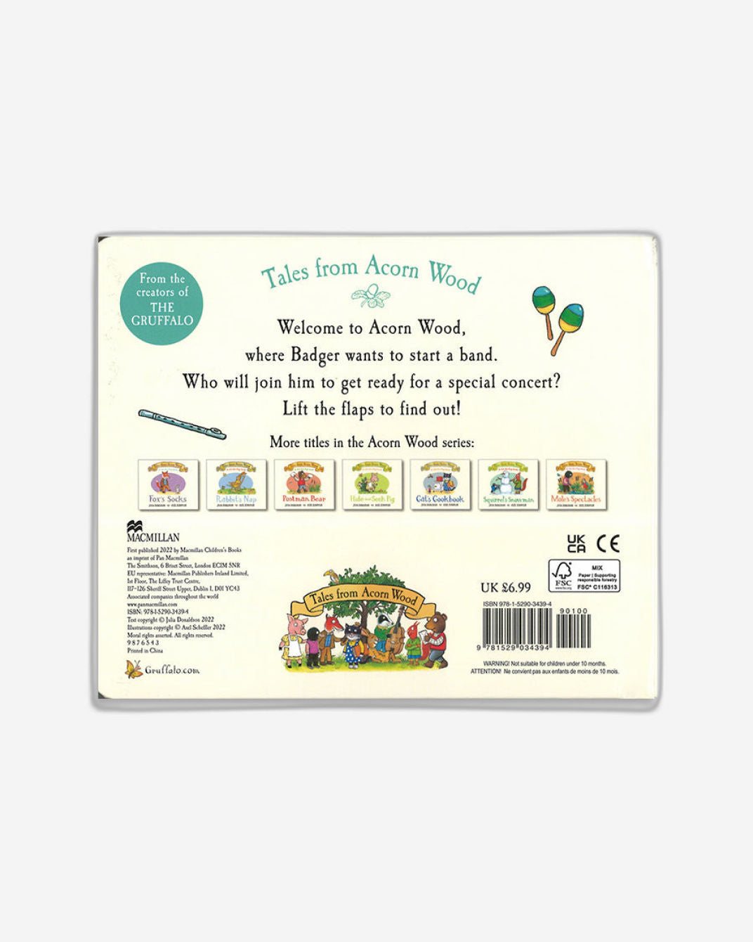 ارفع اللوحات وانضم إلى المرح مع Badger's Band، وهي قصة من سلسلة Tales from Acorn Wood للأطفال ما قبل المدرسة الأكثر مبيعًا من تأليف جوليا دونالدسون وأكسل شيفلر، مبدعي The Gruffalo.