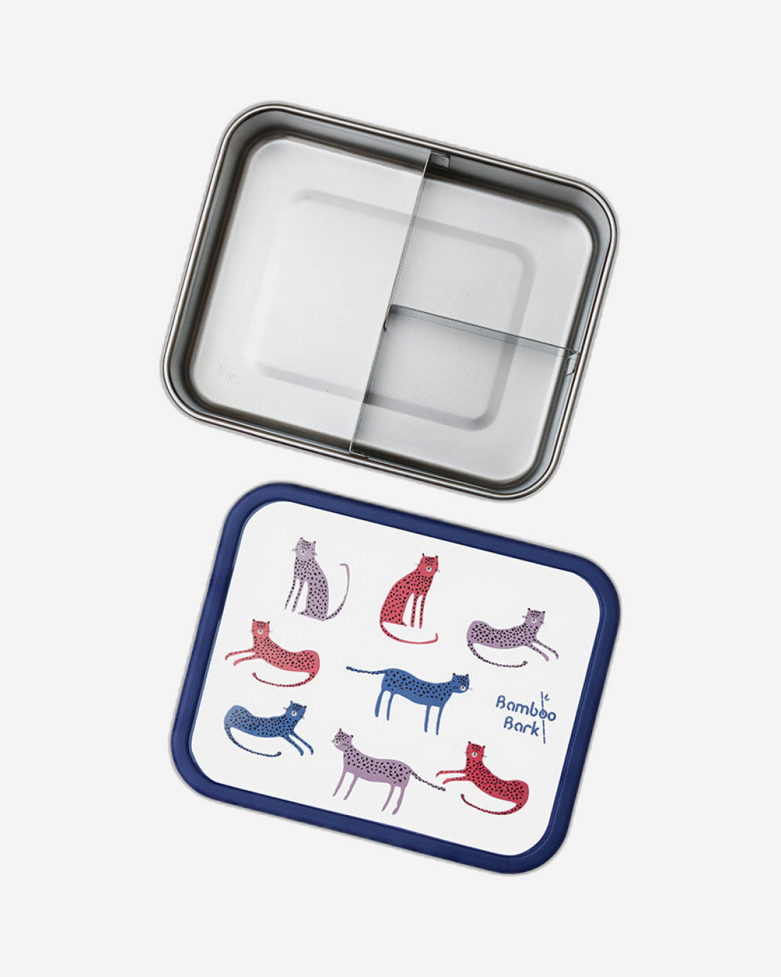 صندوق غداء من الفولاذ بتصميم جلد النمر من لحاء الخيزران