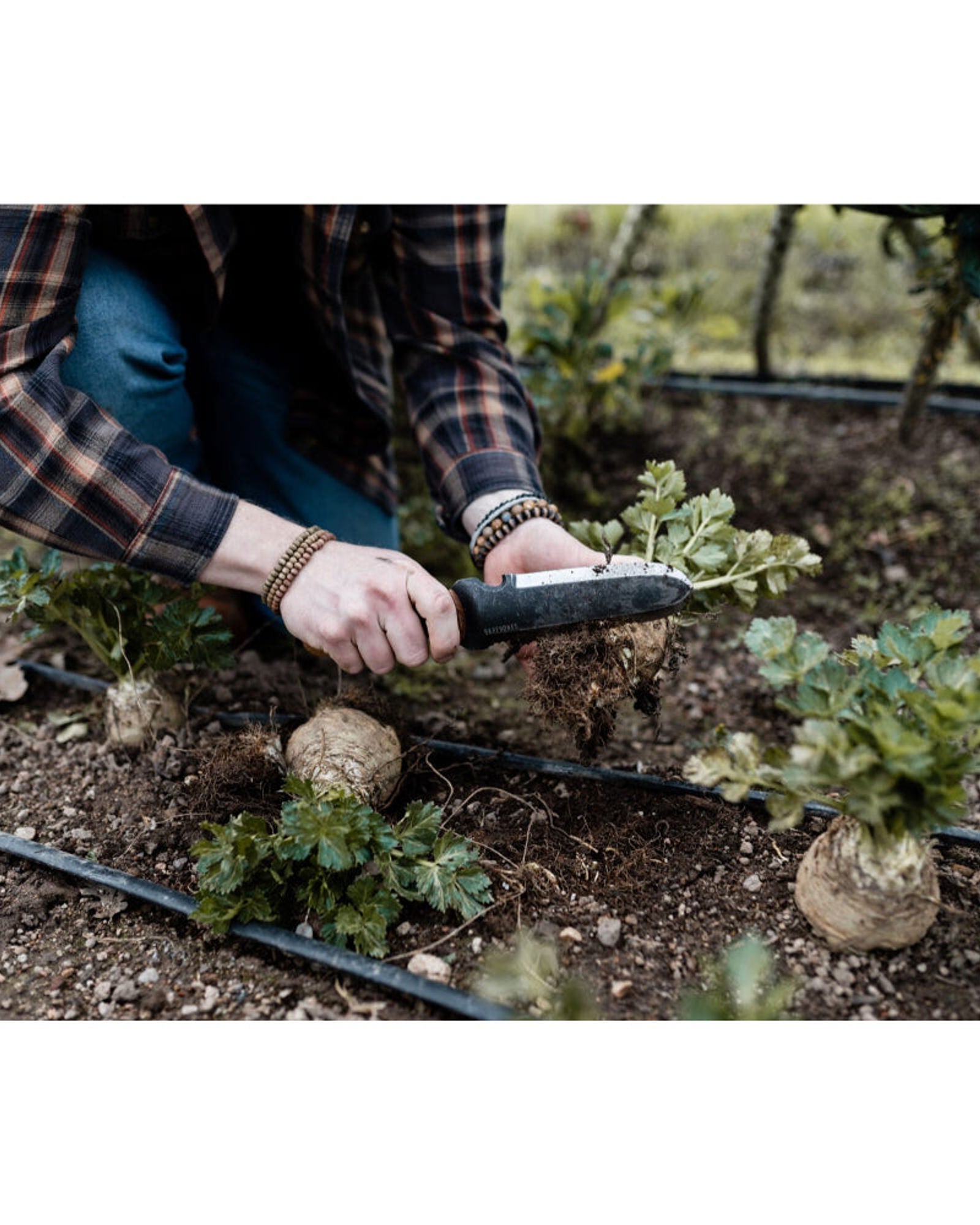 طُبّقت أداة الحفر "هوري هوري كلاسيك" لأول مرة في اليابان، وكانت تُستخدم في الأصل لحفر النباتات بعناية ومنهجية، مثل نبات السانساي، في الجبال. وقد صُممت هذه الأداة الكلاسيكية الفريدة من "باربونز" مع مراعاة أعمال الحدائق. فسطحها العلوي المستدير وجوانبها المسننة تجعلها مثالية للحفر والتجريف وإزالة الأعشاب الضارة. مزودة بشفرة مجوفة مقاومة للحرارة، ومقبض من الفولاذ المقاوم للصدأ بالكامل، ومقبض مريح من خشب الجوز، تُعدّ "هوري هوري كلاسيك" من "باربونز" أداة حديقة متنوعة يمكنك استخدامها مدى الحياة. كما أضيف إليها قاطع خيوط يعمل كفتاحة زجاجات، لتستمتع بمشروبك المنعش بعد يوم عمل شاق.