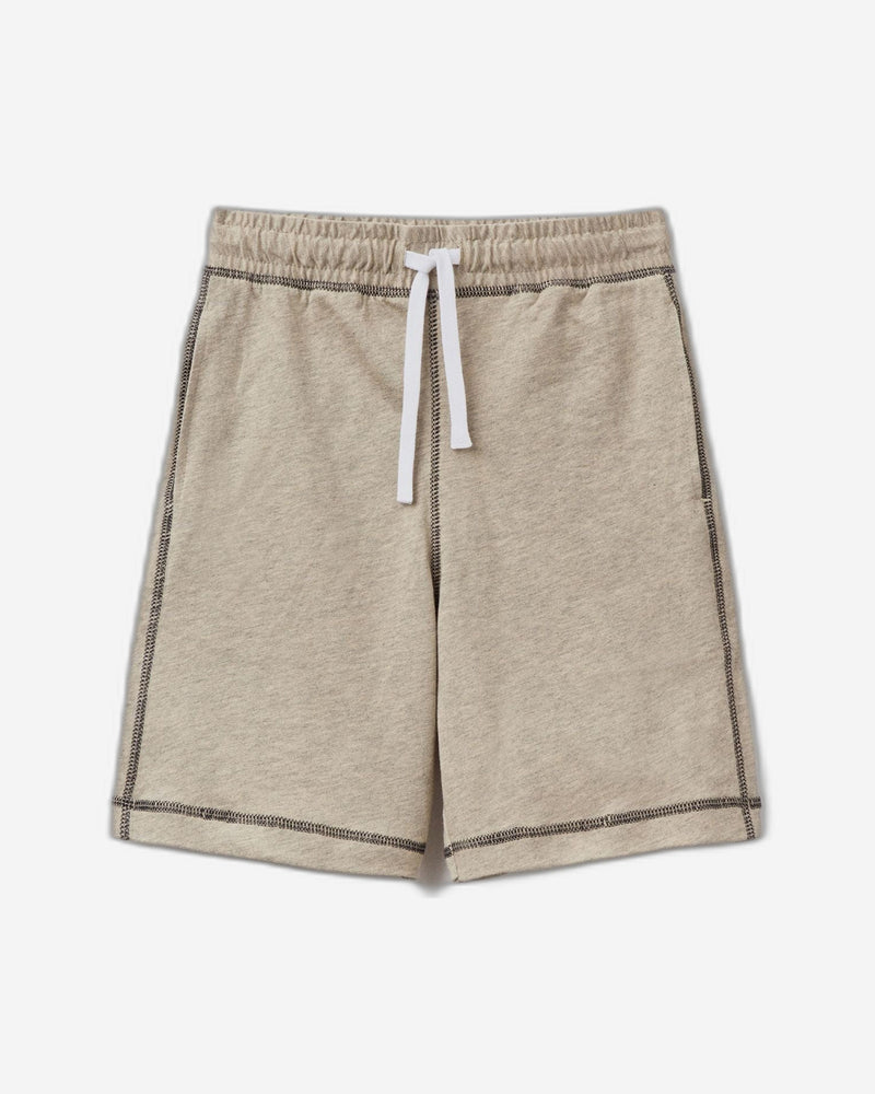 شورت من قطن المارل الخالص، بخياطة متداخلة وحاشية غير مخيطة. خصر داخلي مطاطي ورباط، وجيوب جانبية وجيب صغير في الخلف. تصميم عملي وعصري، مثالي لفصل الصيف.