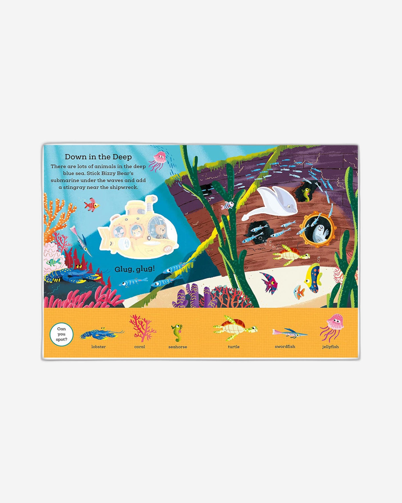 كتاب ملصقات جديد كليًا لمحبي بيزي بير ومركباته، يضم 40 ملصقًا كبيرًا! هذا الكتاب مليء برسومات جريئة من بنجي ديفيز، مؤلف ورسام كتاب "حوت العاصفة". انضم إلى بيزي بير وهو يقفز على متن قطار، ويقود جرارًا في المزرعة، ويقود سفينة، ويقود سيارة سباق. استخدم ملصقاتك لإكمال المشاهد، وساعد بيزي بير على إنقاذ الناس من حريق، والانطلاق في الفضاء بصاروخه! تحتوي كل صفحة على لوحة تحتوي على أشياء للبحث عنها في المشهد الرئيسي.