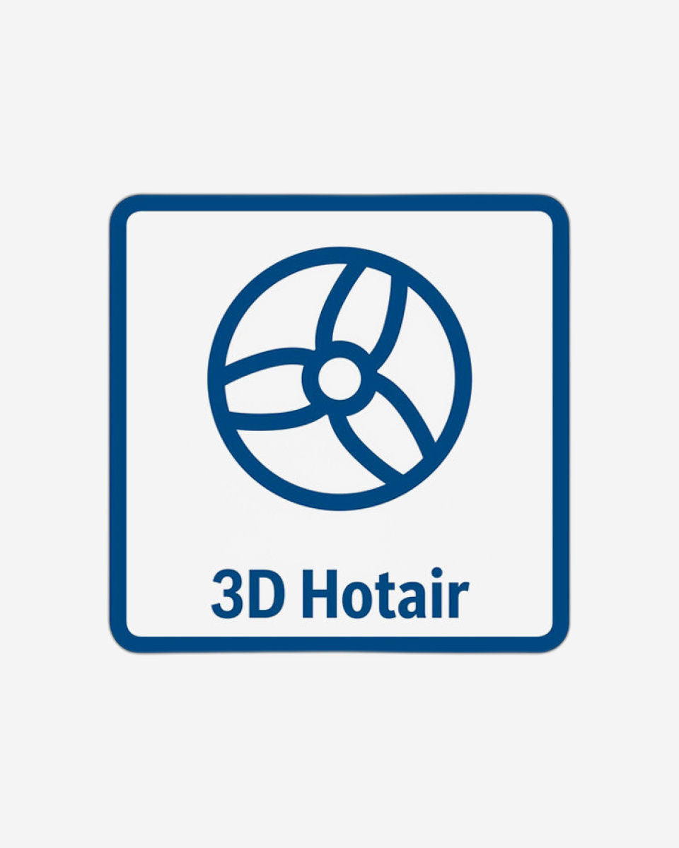 * 6 طرق تسخين: يأتي طباخ بوش الكهربائي المستقل مع 6 طرق تسخين: 3D Hotair، الحرارة التقليدية، الشواء بالهواء الساخن، إزالة الجليد، Hotair اللطيف، الشواية المتغيرة بعرض كامل.