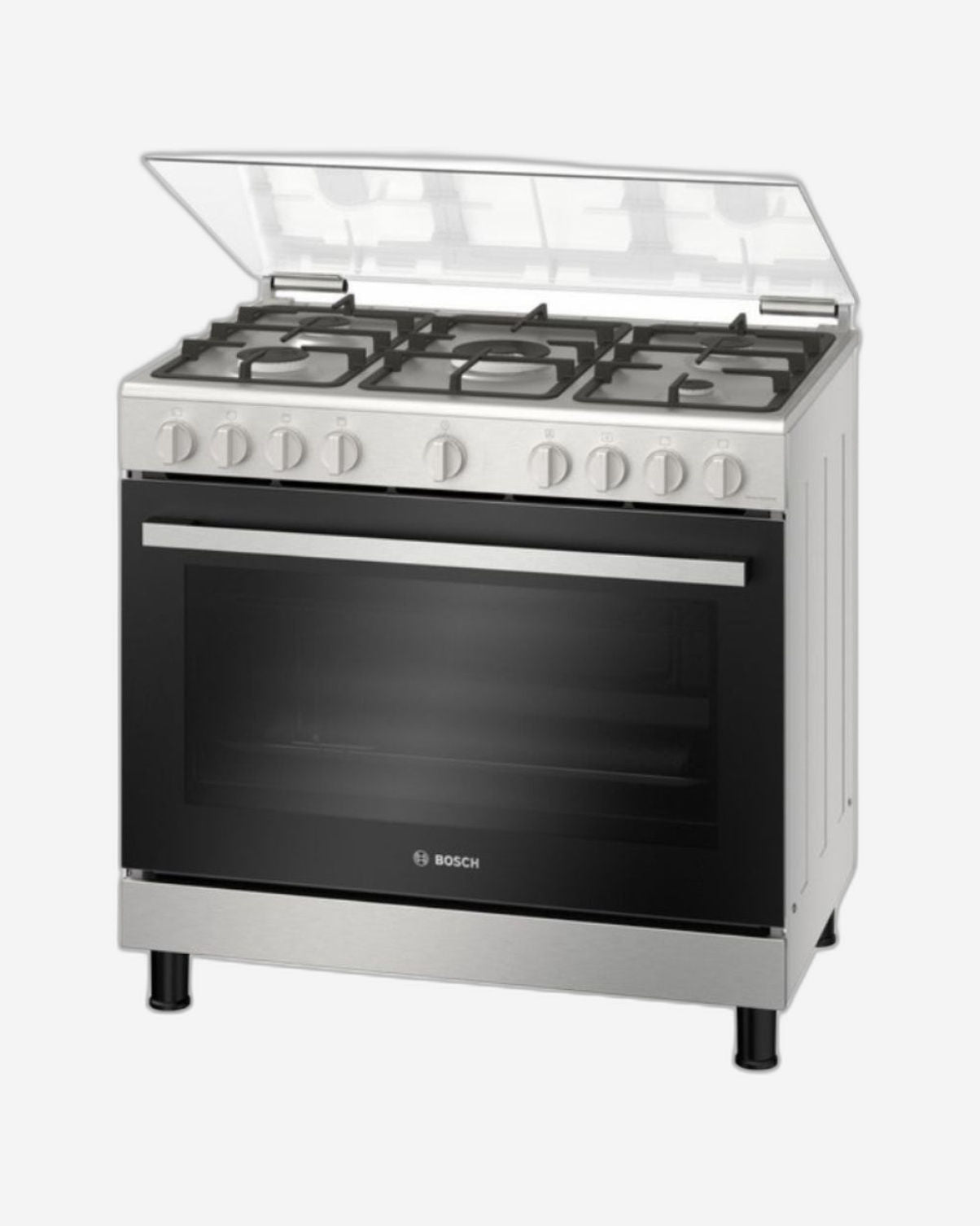 موقد غاز بوش من السلسلة 2، سعة 125 لترًا، مزود بفرن XXL، وشعلة ووك، وميزات أمان - HGV1D8W50M من الفولاذ المقاوم للصدأ