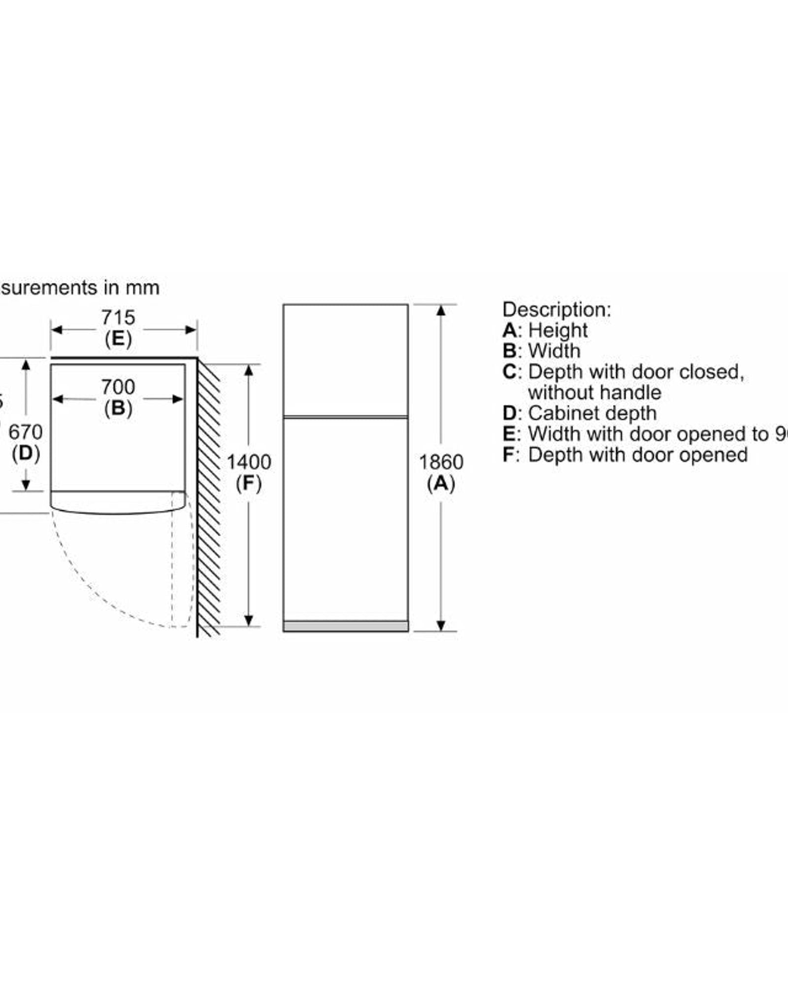 ثلاجة فريزر بوش سلسلة 4 قائمة بذاتها مع فريزر علوي 186 × 70 سم، نظام منع التجمد الكامل - KDN55NLE0M ستانلس ستيل