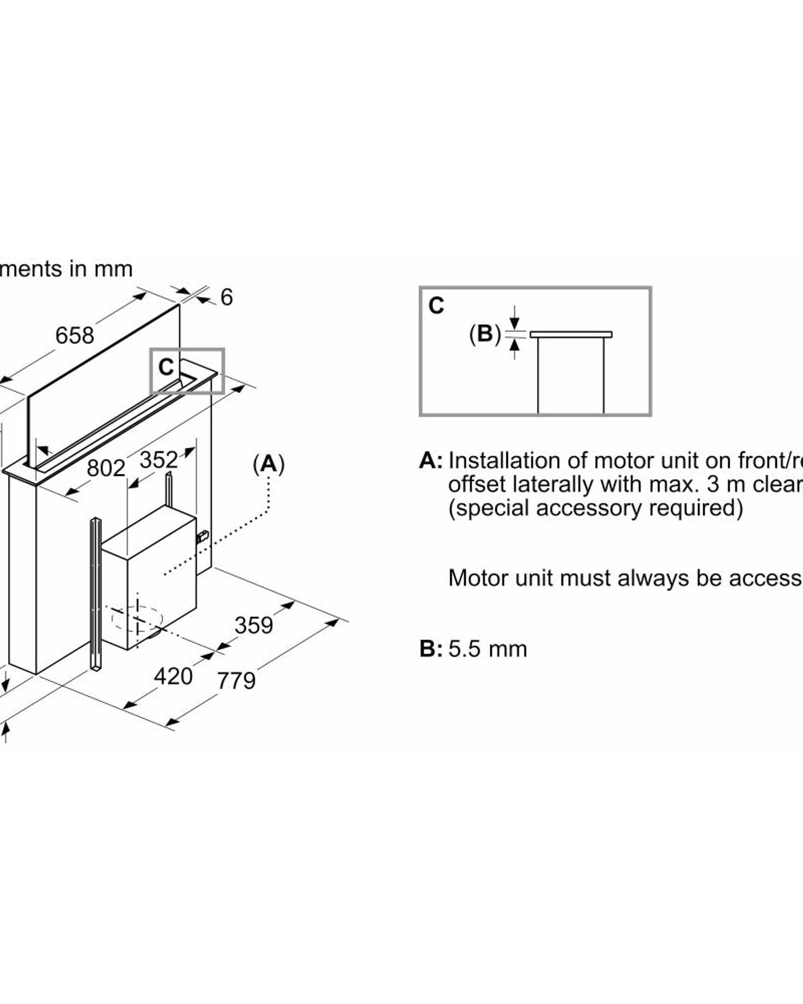 وحدة GlassDraft: استخراج مثالي مباشرة خلف سطح الطهي، بغض النظر عن ارتفاع الوعاء وموضعه.