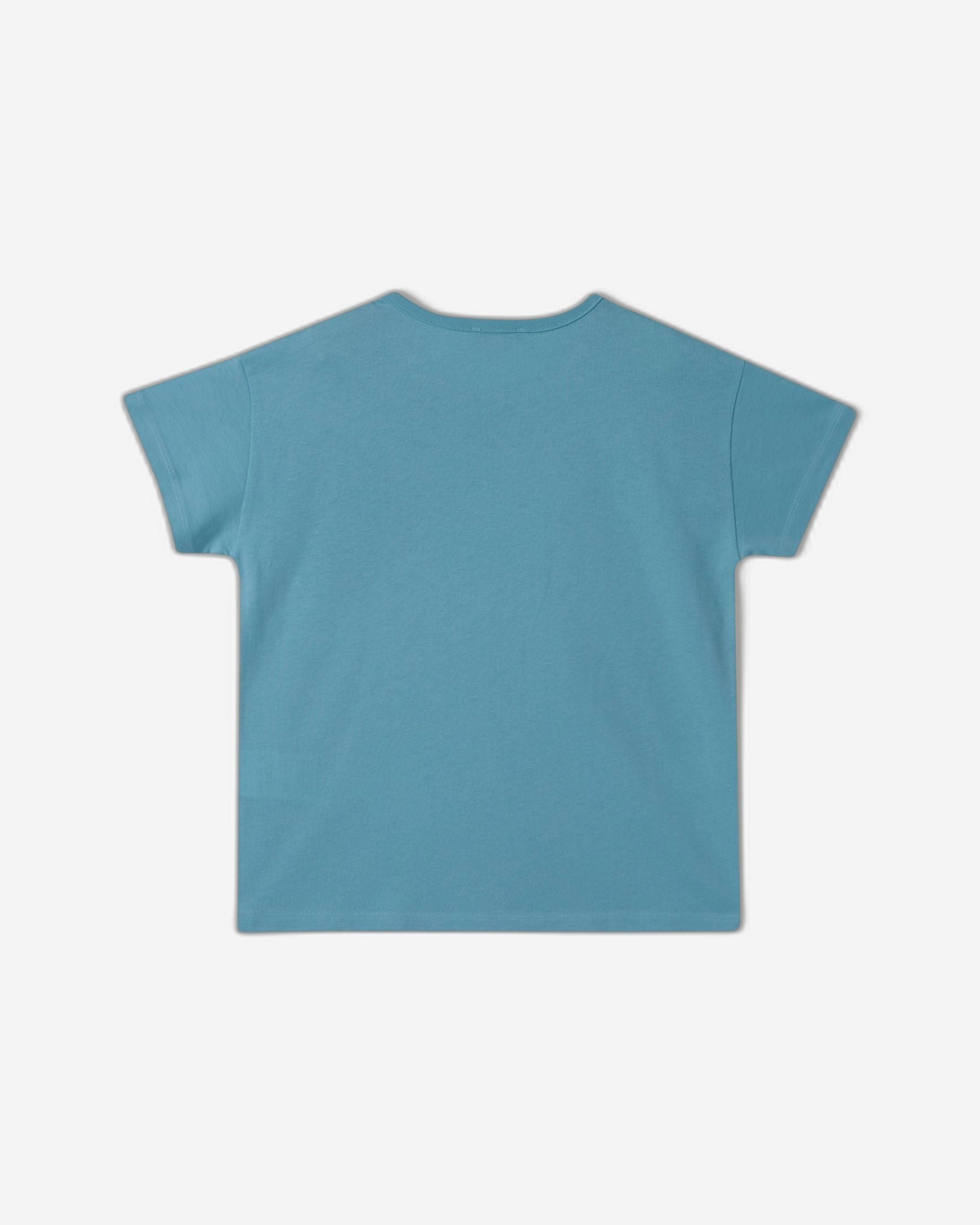 تيشيرت بأكمام قصيرة وياقة دائرية من القطن الخالص. تصميم مربع الشكل مع تطريز عاكس على الجهة الأمامية. لمسة من الإشراق لنزهاتها.