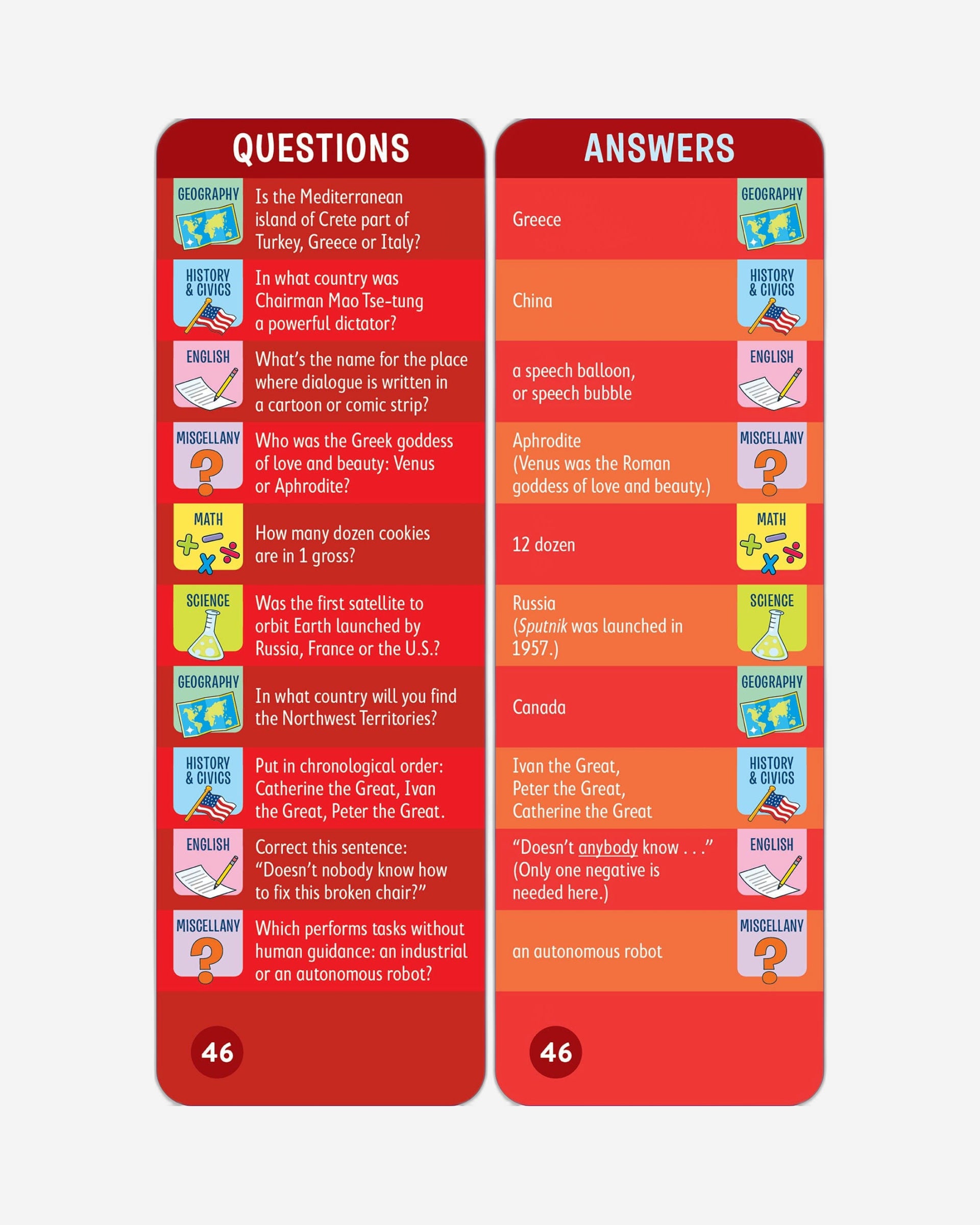 من الممتع أن تكون ذكيًا! هاتان المجموعتان من البطاقات متعددة المواضيع، المليئتان بمئات الأسئلة المتعلقة بالمناهج الدراسية، ستجعلان التعلم أكثر متعة لطلاب الصف السادس في كل مكان.
