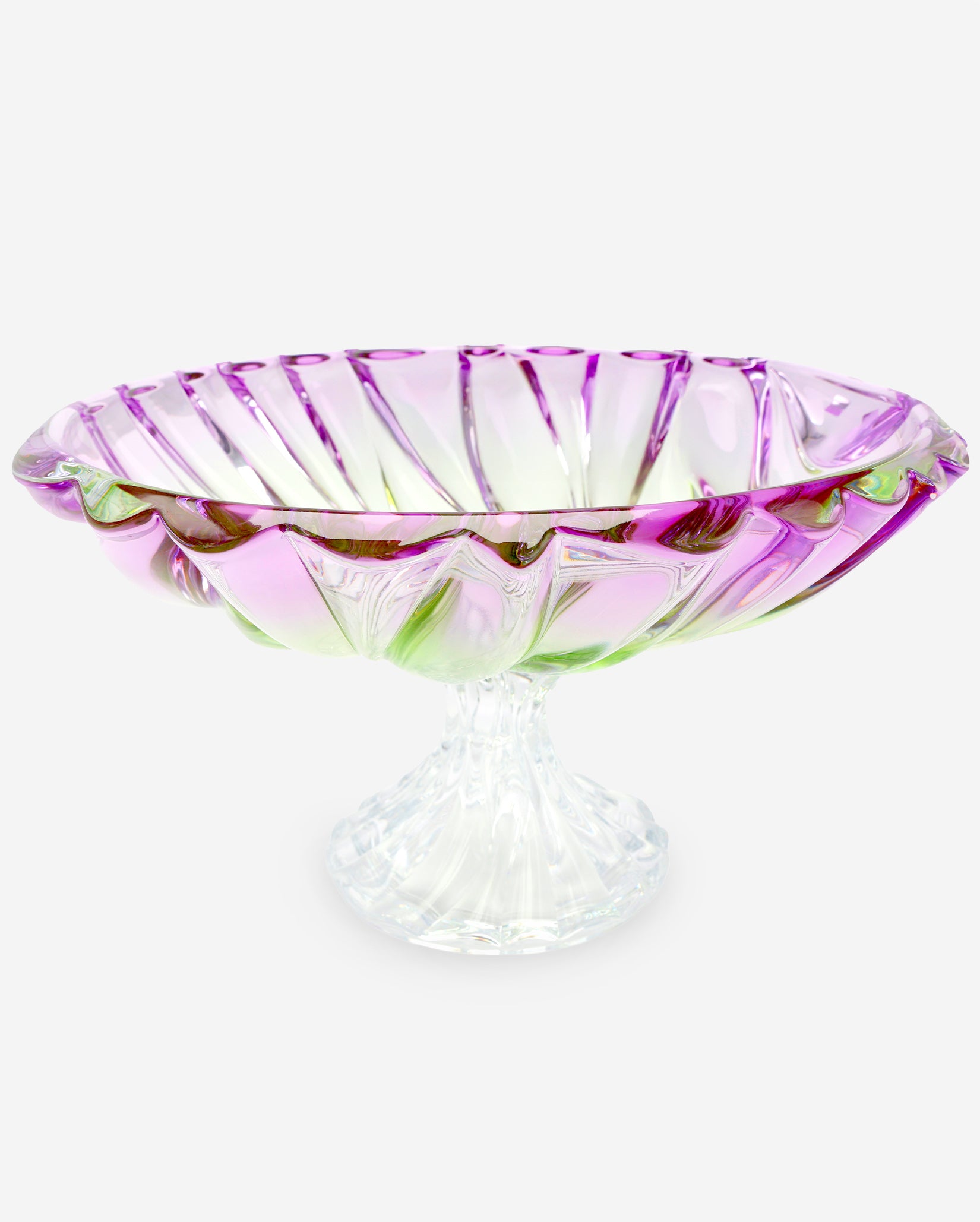 وعاء تشي كريستال بوهيميا بامبو فوتيد 336 خالٍ من الرصاص بألوان خضراء وبنفسجية