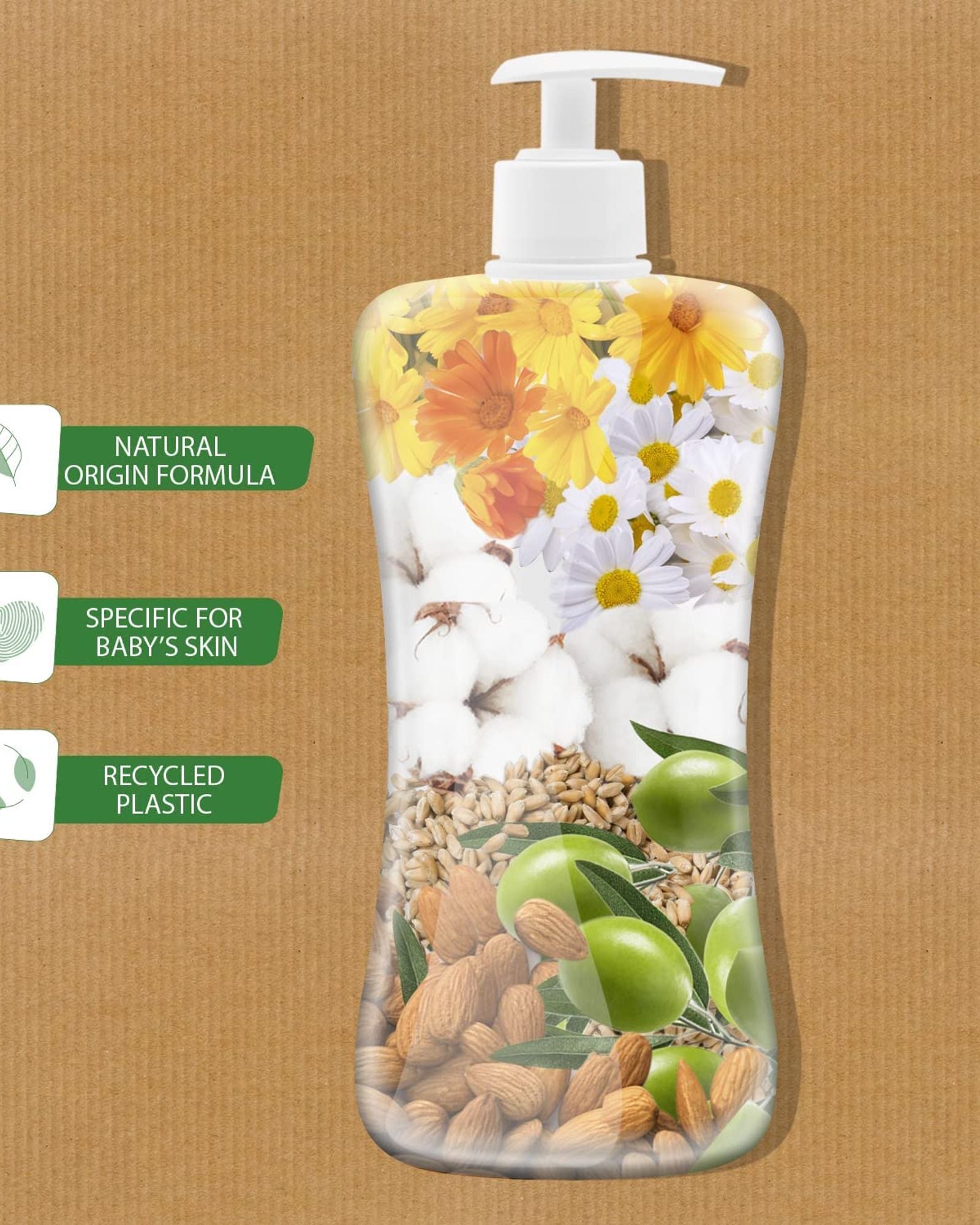 يُنظّف شعر طفلكِ الناعم وبشرته الحساسة بخطوة واحدة. تركيبة لا تُسبب الدموع، مُكوّنة من 92% من مكونات طبيعية، وتحتوي على خلاصة الآذريون المعروفة بخصائصها المُطرّية. يُترك البشرة والشعر ناعمين برائحة عطرة.