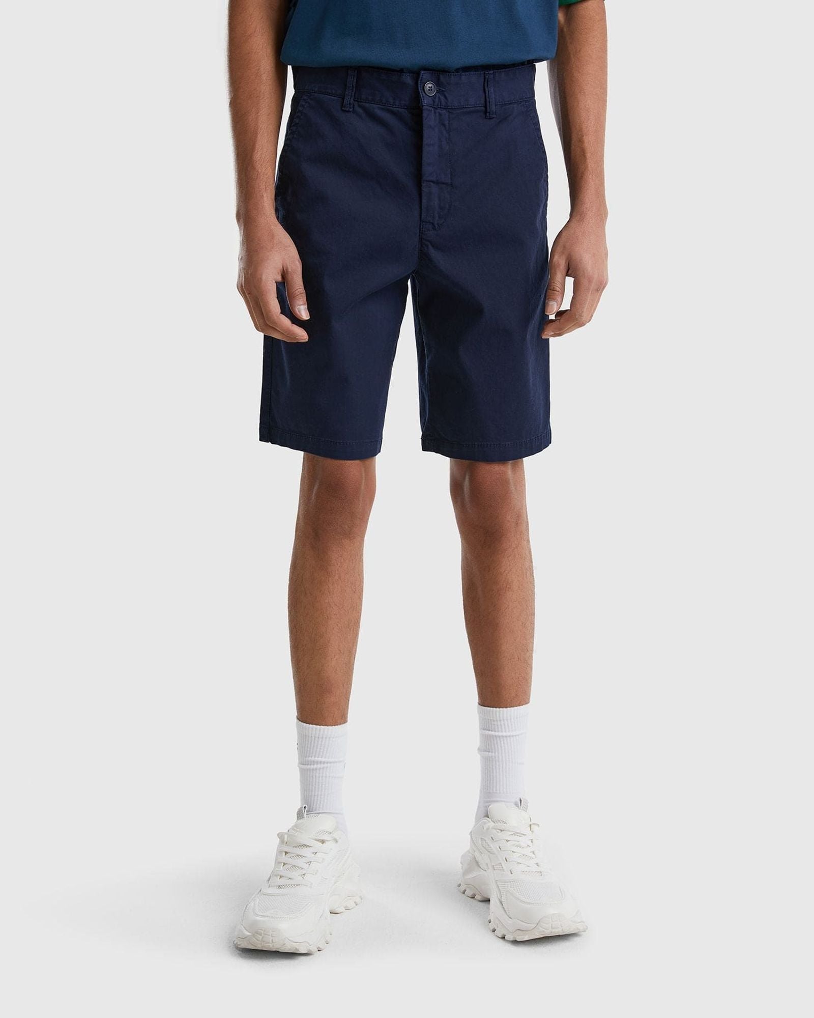 بنطلون قصير بنمط شينو من القطن المرن. جيوب أمامية وجيب صغير في الخلف. خصر مزود بحلقات للحزام، وفتحة سحاب وأزرار. تصميم أنيق وعملي يناسب الملابس اليومية.