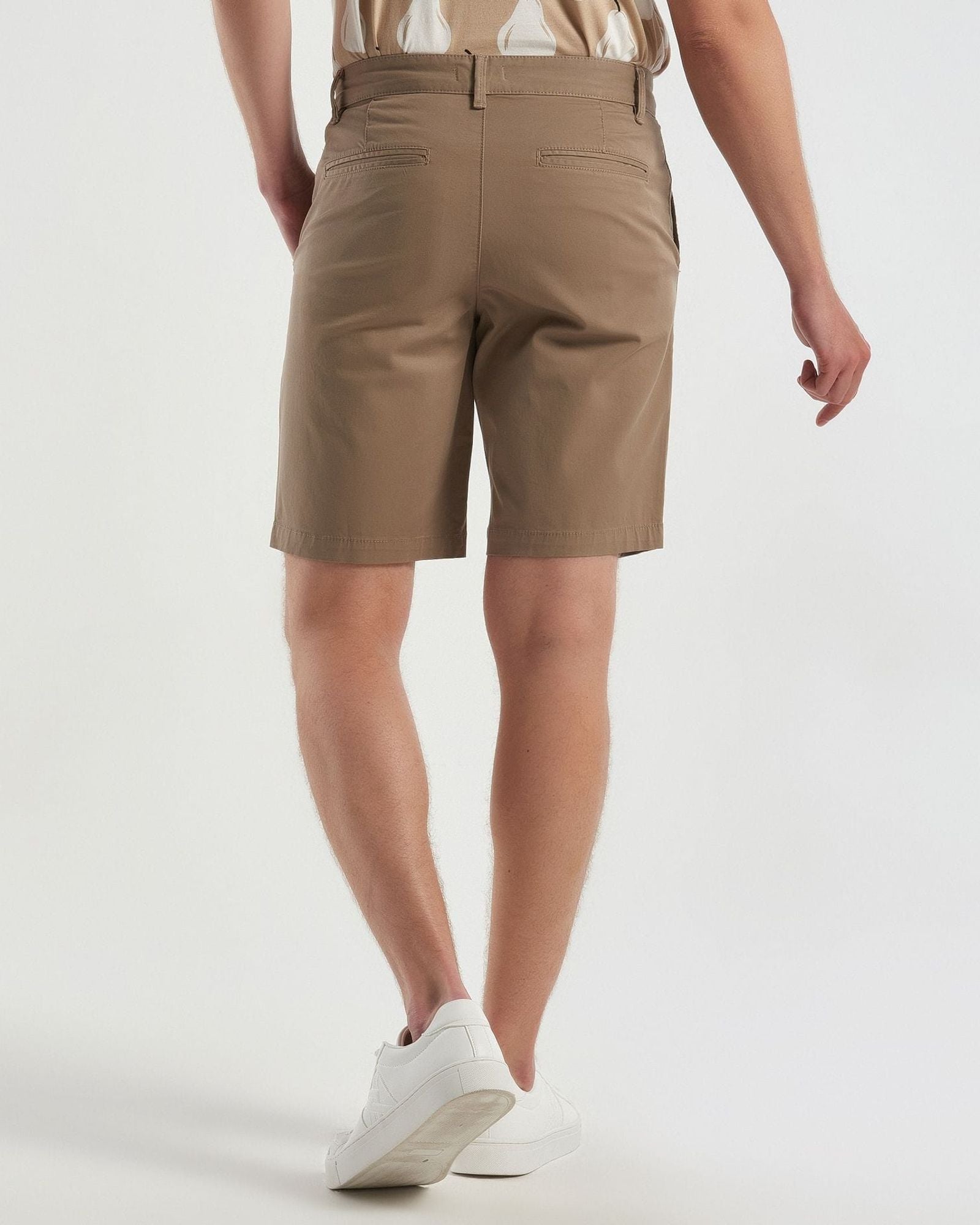 بنطلون قصير بنمط شينو من القطن المرن. جيوب أمامية وجيب صغير في الخلف. خصر مزود بحلقات للحزام، وفتحة سحاب وأزرار. تصميم أنيق وعملي يناسب الملابس اليومية.