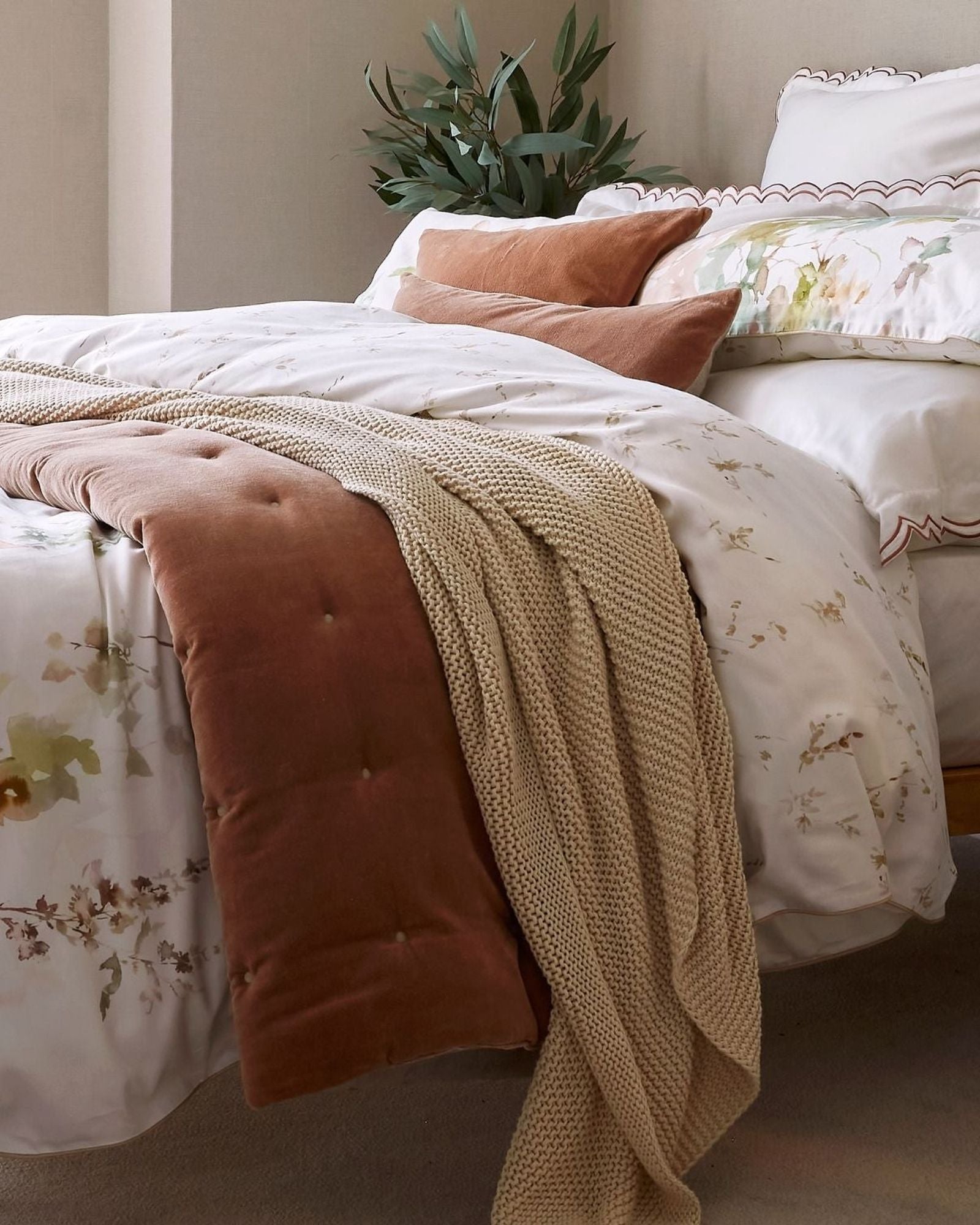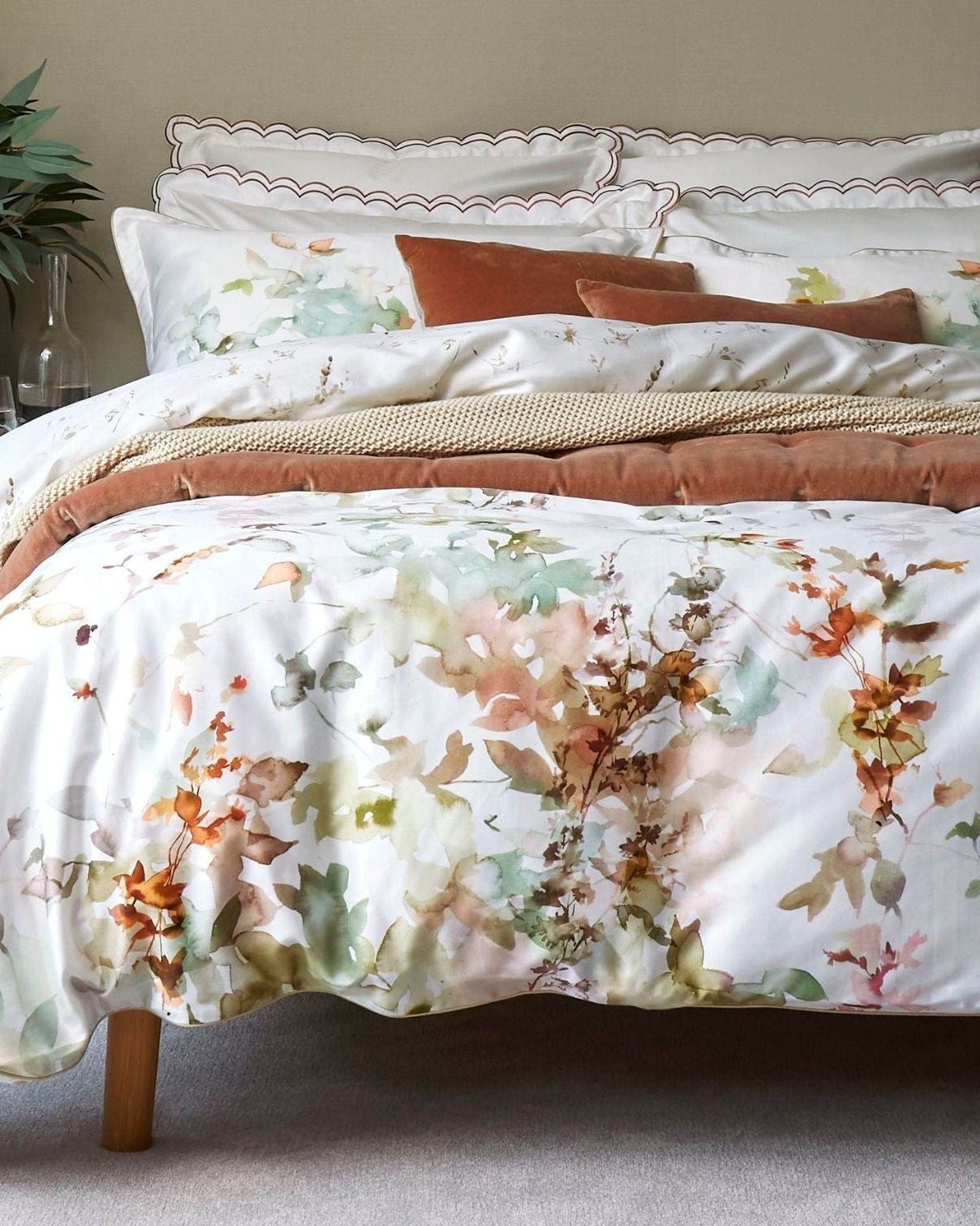 الوجه والظهر: 230 خيطًا من القطن الساتان مع حواف مزخرفة.