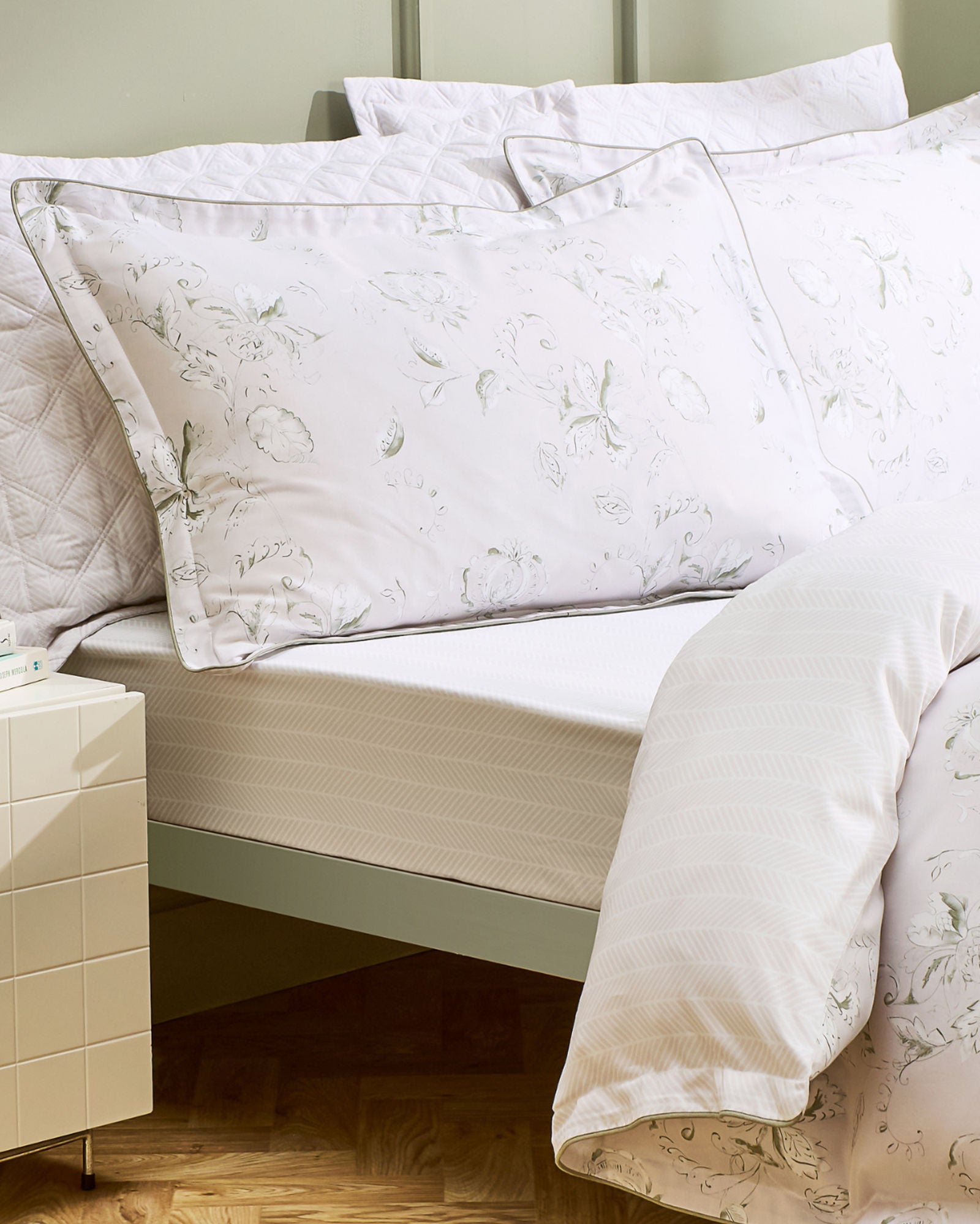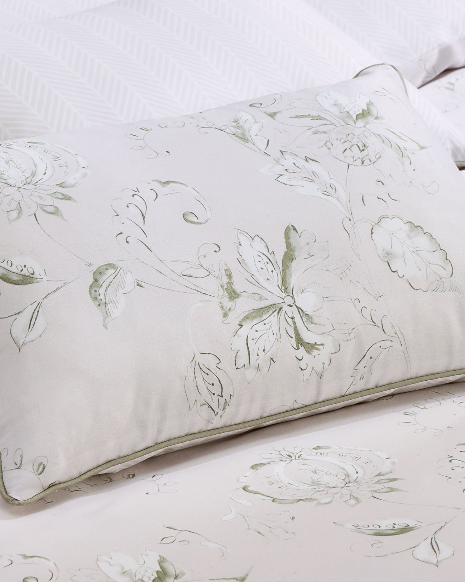 اشعر بالأناقة مع مزيج هاتون الرقيق من الأزهار المتشابكة ودرجات الألوان الهادئة. صُمم طقم الفراش هذا من قِبل فنانينا الداخليين، مستوحىً من فن الأرشيف البريطاني، ليضفي سحرًا ريفيًا إنجليزيًا على مساحتك، بنقشة متعرجة كلاسيكية على الوجه الآخر. مصنوع من قطن ساتان 100% بعدد خيوط 230، ليمنحك شعورًا بالنعومة والراحة والفخامة طوال العام.