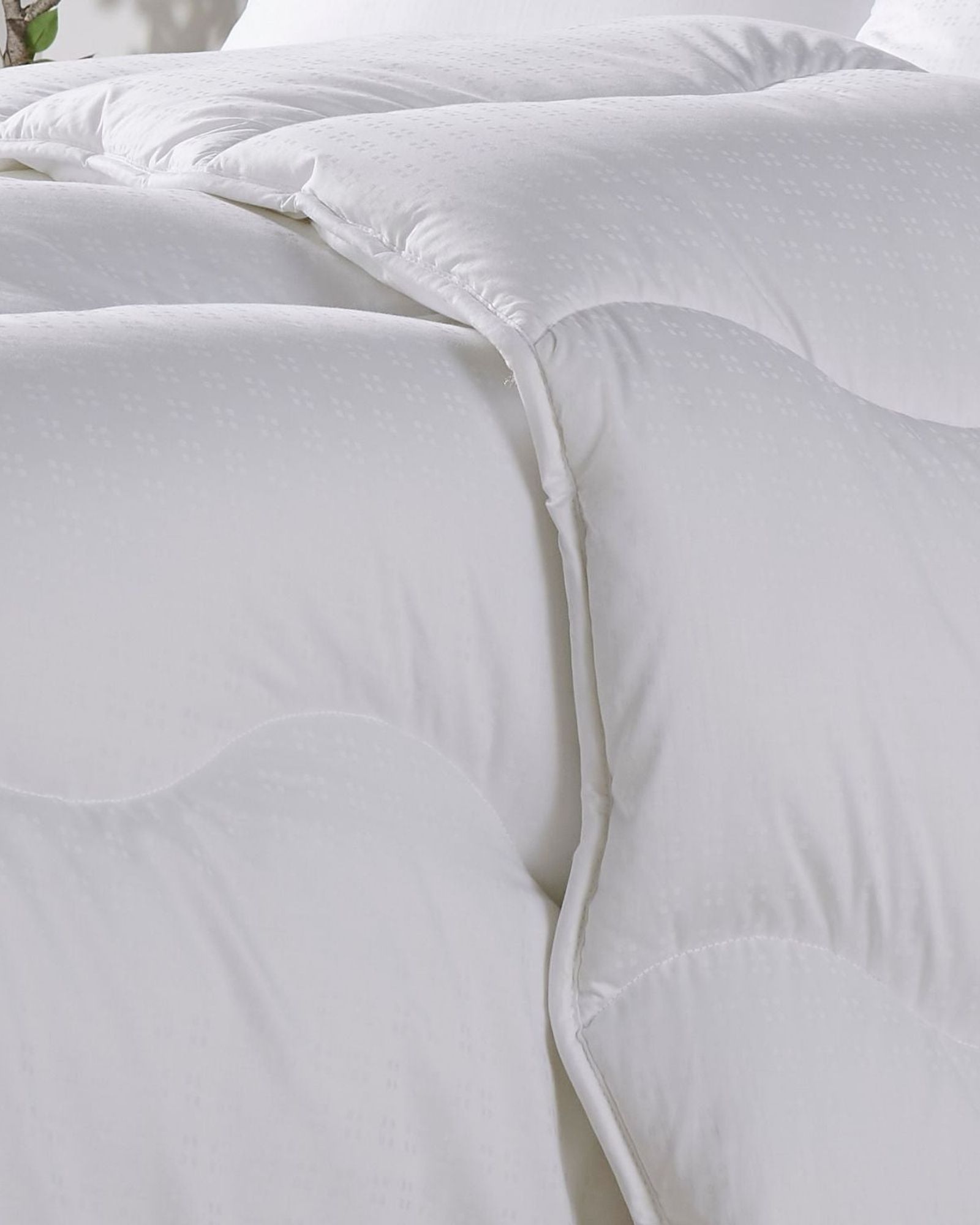 غلاف من القطن الخالص بطبقة فاخرة من قماش الجاكار المنقط 300TC، معالج بـ HealthGuard، الحشوة عبارة عن بوليستر من الألياف الدقيقة بنسبة 100%.