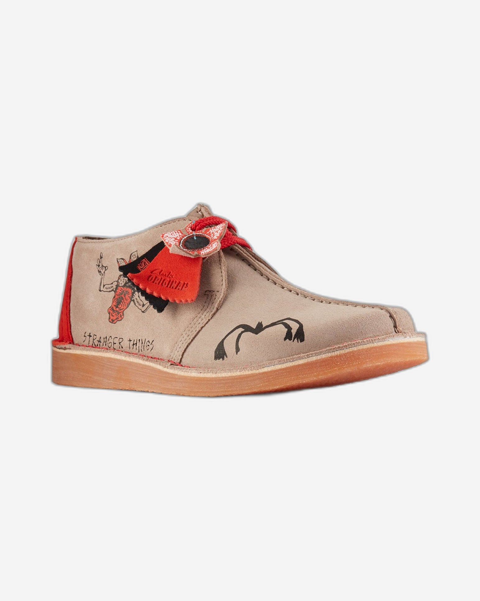 • جزء علوي كلاسيكي من جلد الغزال الرملي من Clarks Originals يتميز بتصاميم مستوحاة من Stranger Things مطرزة ومطبوعة على الشاشة