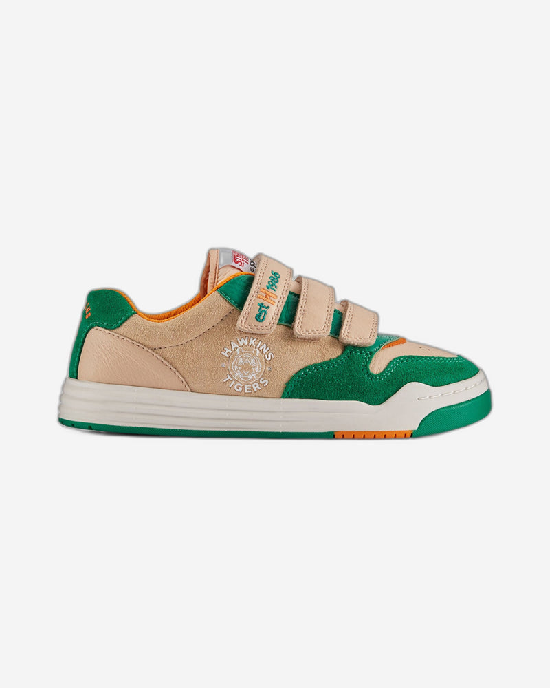 حذاء "أوربان إيس"، حذاءنا الرياضي البسيط ذو الطابع الكلاسيكي، مستوحى من مسلسل "سترينجر ثينجز" بتصميم فريد مستوحى من مدرسة هوكينز الثانوية من مسلسل نتفليكس. مصنوع من جلد سويدي ناعم باللونين الأبيض المائل للصفرة والأخضر، ويُغلق بأشرطة لاصقة عملية. وبروح الجامعة، يُزيّنه تصميم "هاوكينز هاي" على الكعب وشعار "باو" الشهير على الجانب - هيا يا تايجرز! • جزء علوي من الجلد المتين يتميز بتفاصيل مستوحاة من مسلسل Stranger Things • بطانة التحكم في الروائح Microban® (تحتوي على المكون النشط: كلوريد أوكتاديسيل ثنائي ميثيل ثلاثي هيدروكسي سيليل بروبيل الأمونيوم) للحفاظ على انتعاش الأحذية • ملصق لسان منقوش عليه عبارة Stranger Things مع شعار Clarks مقلوبًا • طباعة تصميم مستوحى من فريق هوكينز الجامعي على الكعب • طوق ولسان مبطنان لمزيد من الراحة والدعم • جورب قابل للتنفس، مصنوع من 30% من المواد المعاد تدويرها • نعل أوسط من مادة EVA ونعل خارجي من المطاط مع إعادة طحن بنسبة 5-8% • يتم تقديمه في صندوق يحمل علامة Stranger Things التجارية دليل المقاسات