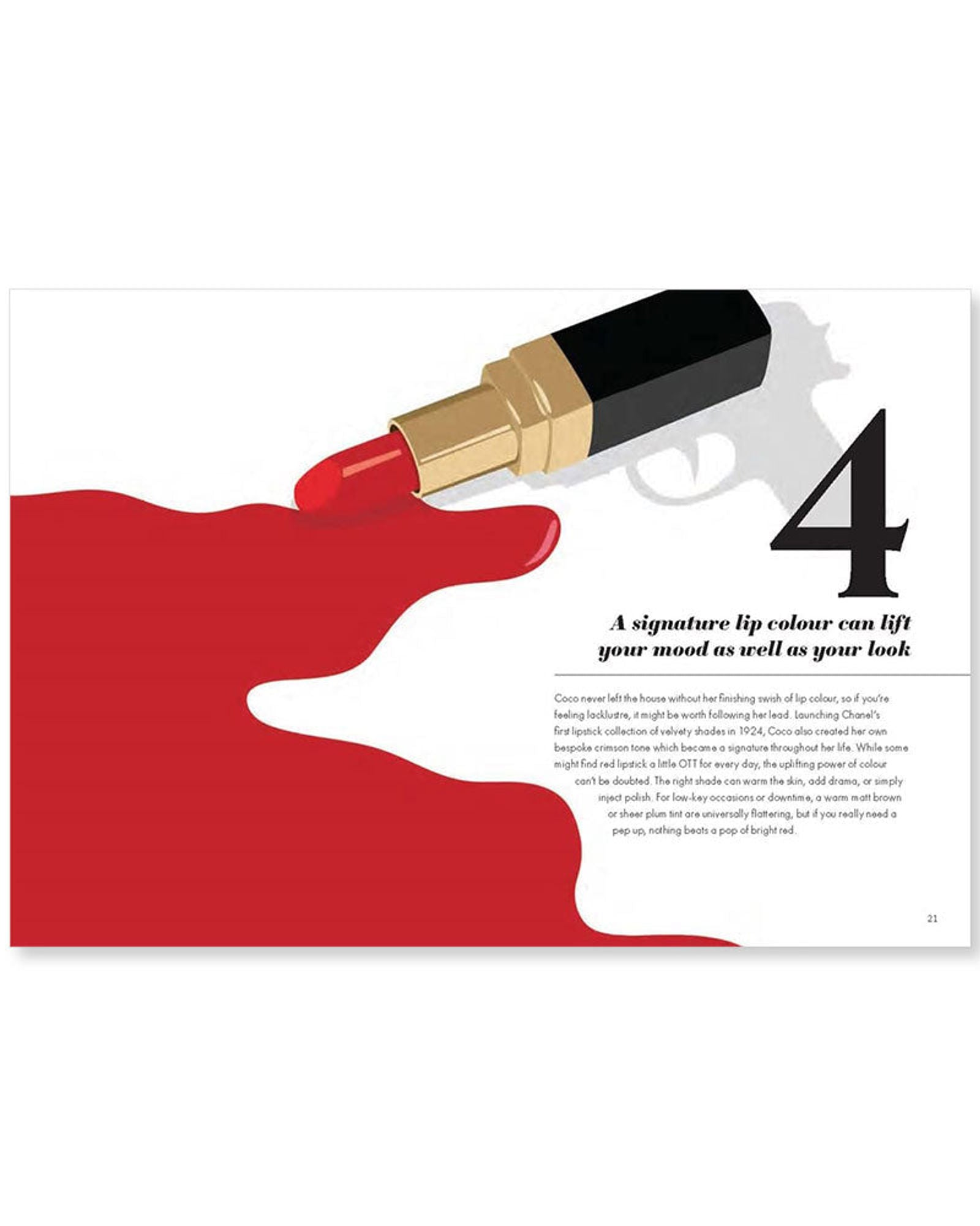 تمت كتابة كل قاعدة بواسطة الصحفية الشهيرة في مجال الموضة كاثرين أورميرود، ويصاحب كل قاعدة رسم توضيحي جريء وأنيق من كارولينا ميليس.