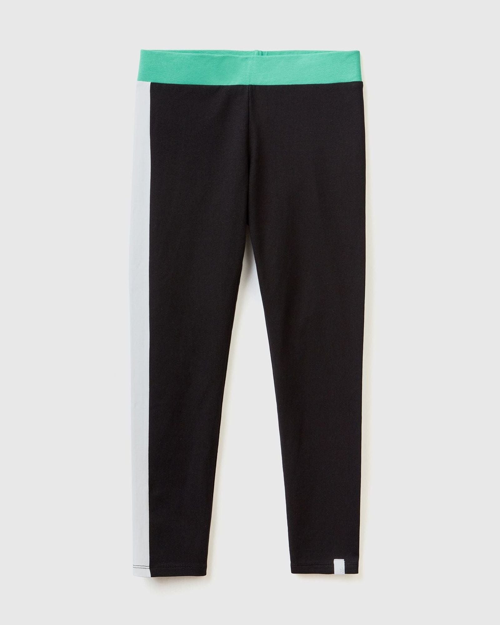 بنطال ضيق من القطن المرن، بأشرطة جانبية وخصر بلون موحد. تصميم رياضي للجري واللعب بحرية.