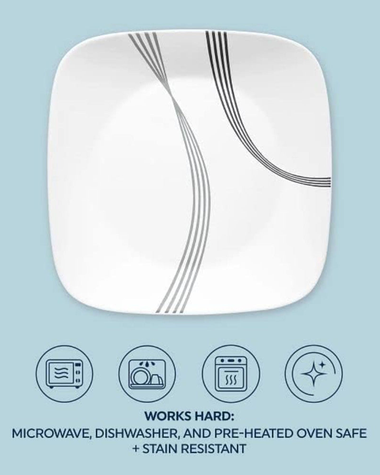 * مستدام: يتم تصنيع Corelle Vitrelle من ما يصل إلى 80% من الزجاج قبل الاستهلاك ومصمم ليدوم مدى الحياة