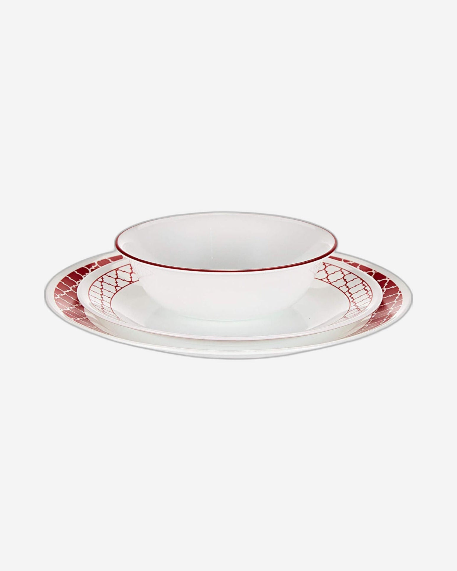 طقم عشاء كوريل 18 قطعة بتصميم شبكي قرمزي