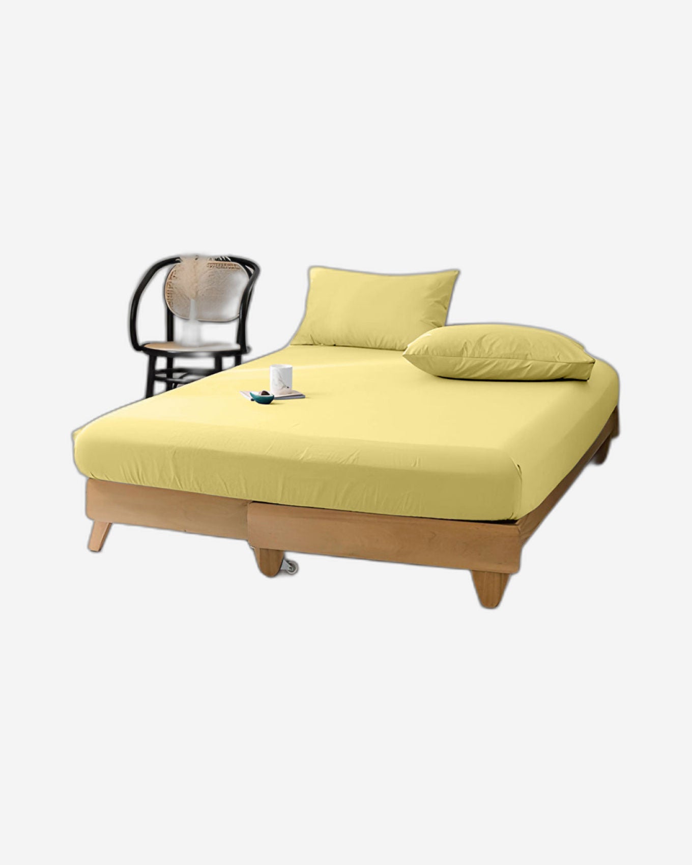 ملاءة سرير قطنية منزلية قطعة واحدة، لون أصفر جيرسي