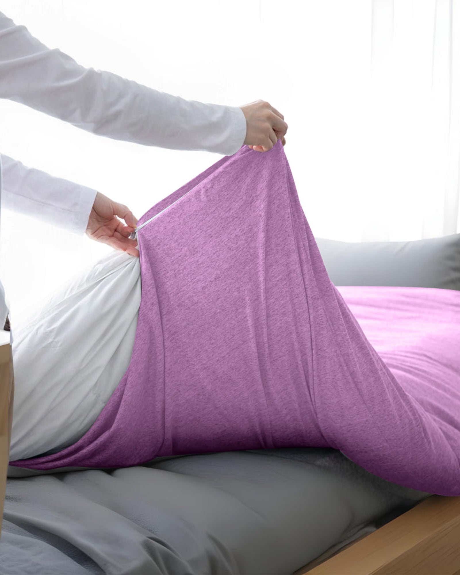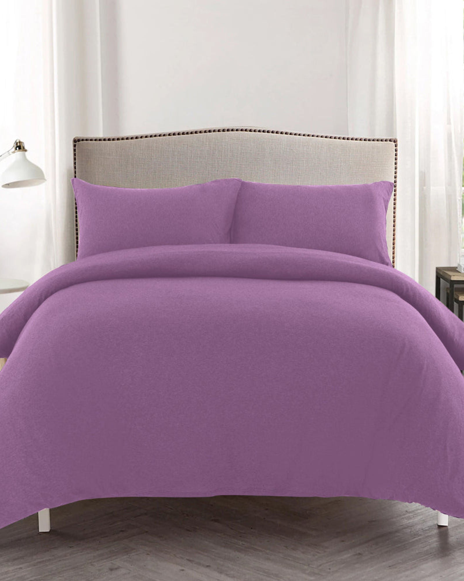 طقم غطاء لحاف من القطن الجيرسي مكون من 3 قطع باللون الأرجواني