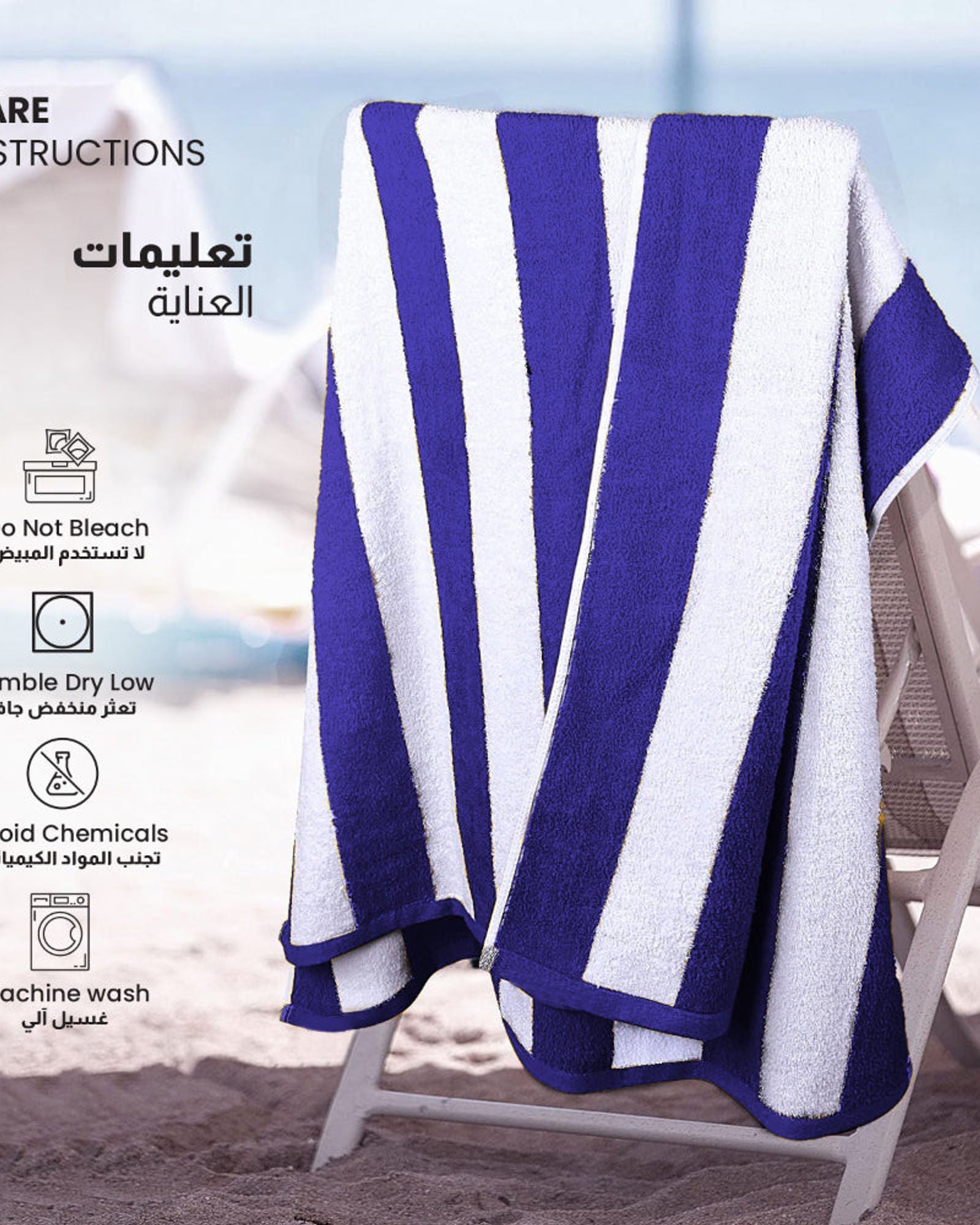 منشفة حمام سباحة كبيرة الحجم، مصنوعة من قطن أكثر سمكًا بنسبة 100% من المنشفة المخططة، تتميز بقدرة امتصاص فائقة وجفاف سريع. سواءً لففت نفسك بعد السباحة في المحيط أو استلقيت على كرسي حمام السباحة، ستتخلص من قطرات الماء الزائدة في دقائق. أبعادها 90 × 180 سم، وهي كبيرة بما يكفي لتمديدها والاسترخاء التام. كما أنها مصنوعة لتدوم طويلًا بحواف معززة تحافظ على سلامتها بعد عدة استخدامات وغسلات.