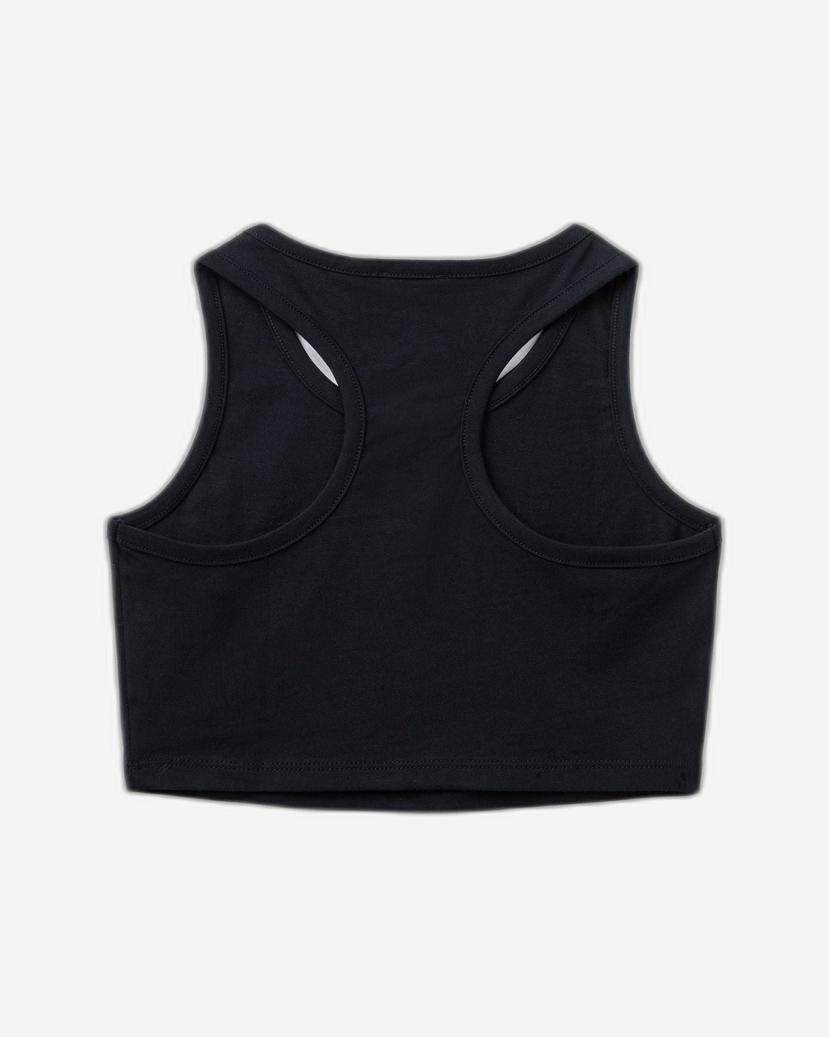 بلوزة قصيرة بدون أكمام من القطن الخالص. أكتاف عريضة وظهر بتصميم رياضي، مع أسماء ألوان مطبوعة على المقدمة. تصميم بسيط وعصري.