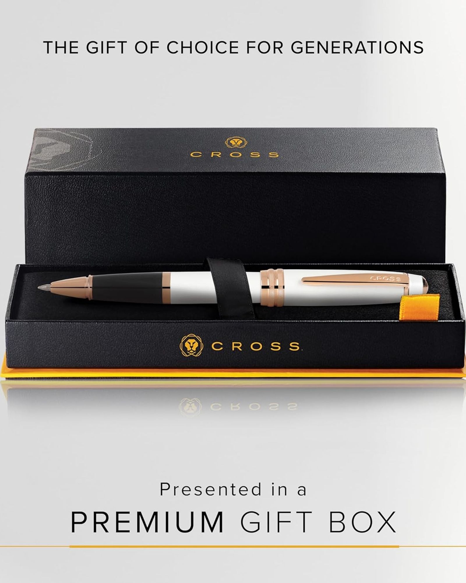 قلم حبر جاف كروس بيلي™ مطلي باللون الأبيض اللؤلؤي مع لمسات باللون الذهبي الوردي - AT0455-22