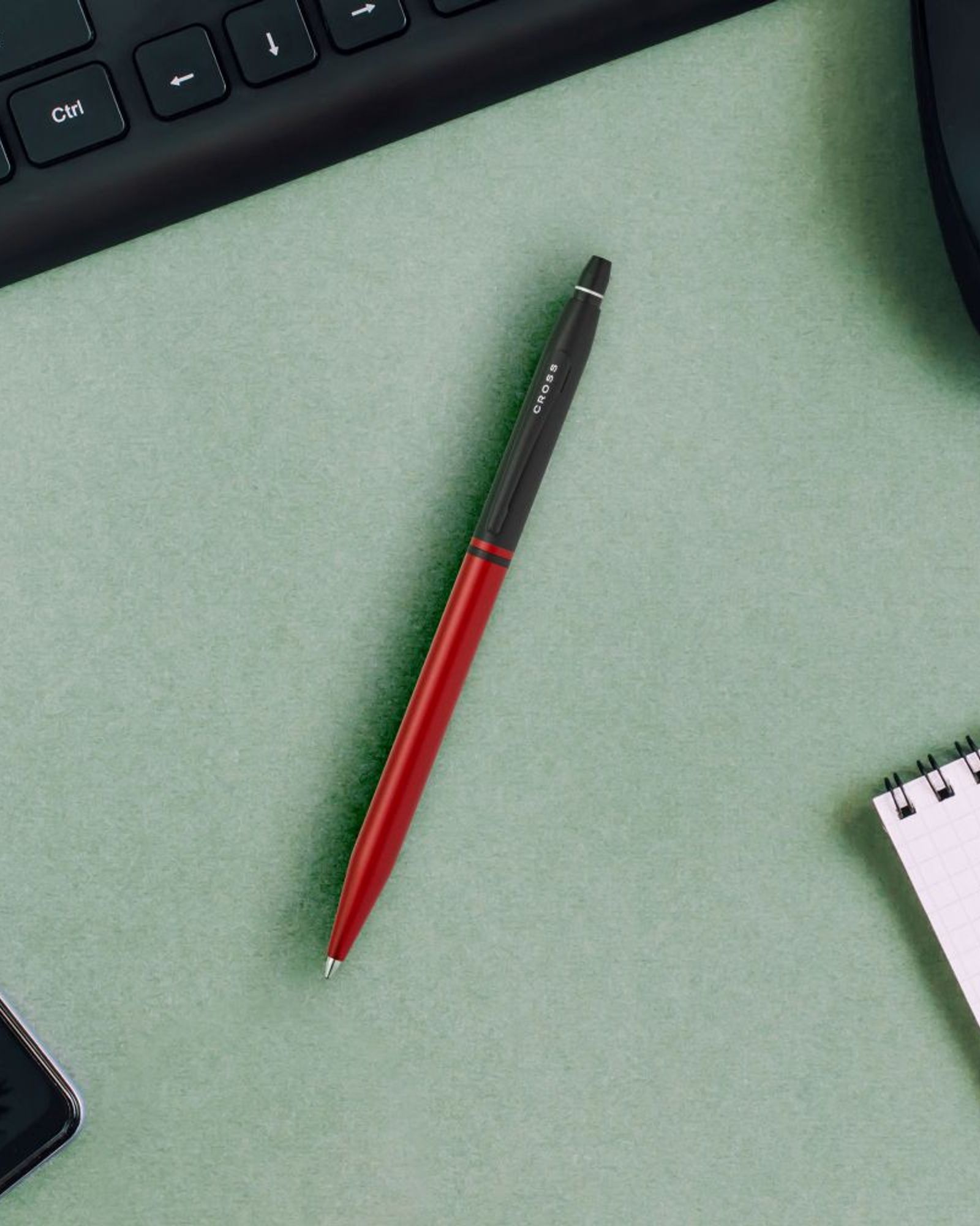 قلم حبر جاف كروس كليك™ تاكسيدو ساتان معدني أحمر AT0622-125