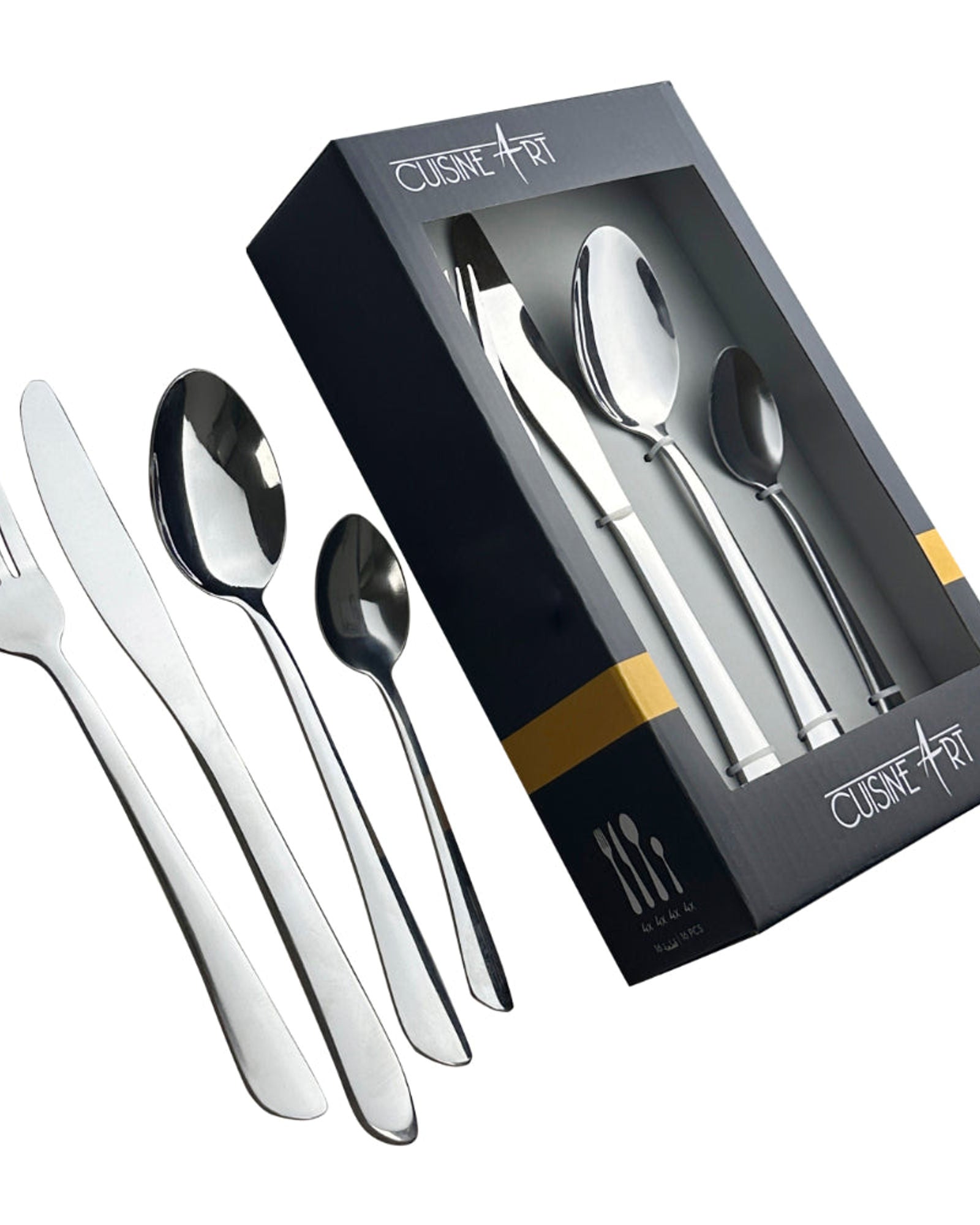 طقم أدوات مائدة كويزين آرت، 16 قطعة، فضي ساسا