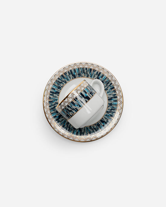دانكوتوا موريس أزرق/ذهبي 6+6 فنجان قهوة/صحن