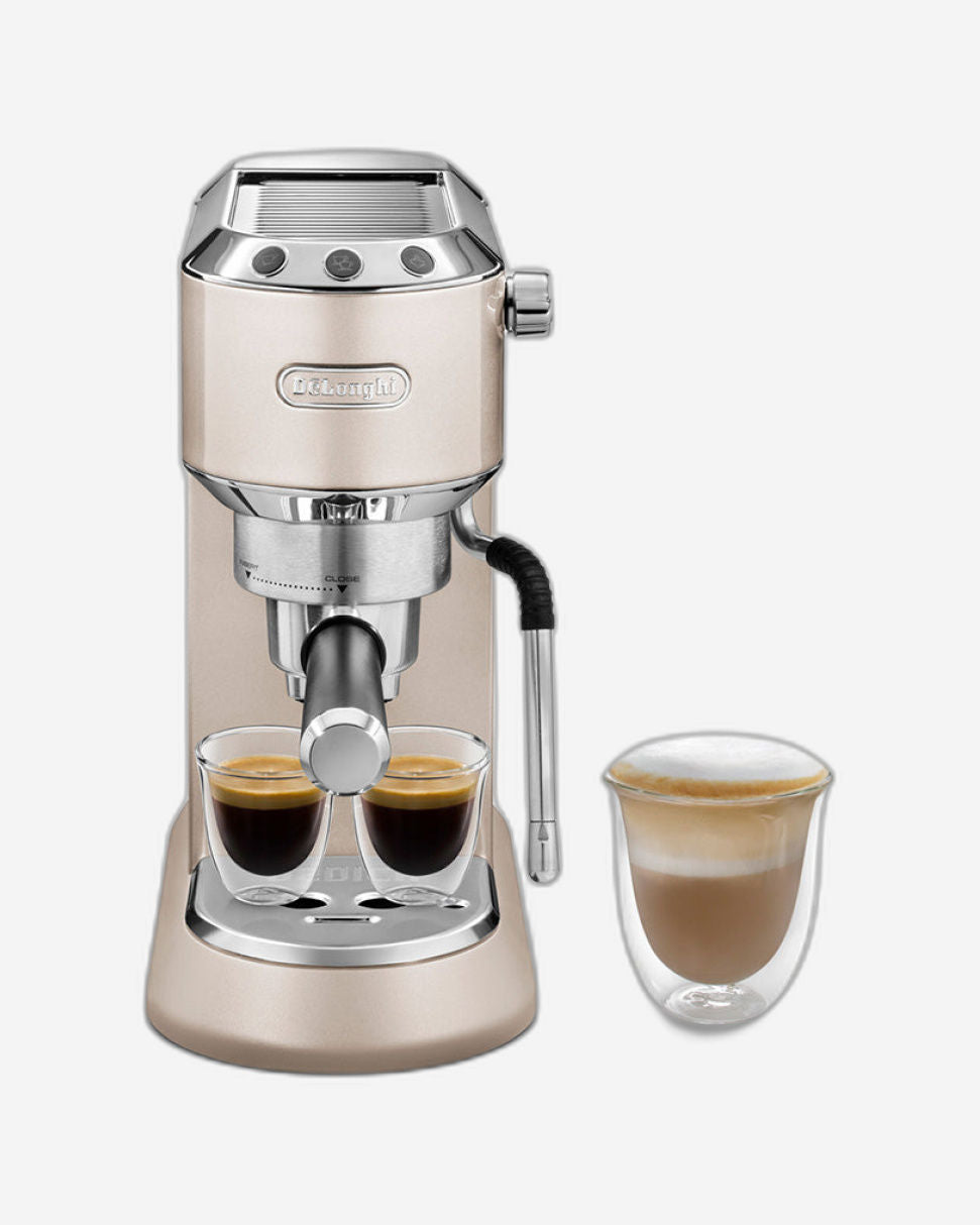 * يأتي جهاز Dedica Arte مع مجموعة ملحقات مكونة من مدك قهوة احترافي وإبريق حليب مصنوع من الفولاذ المقاوم للصدأ