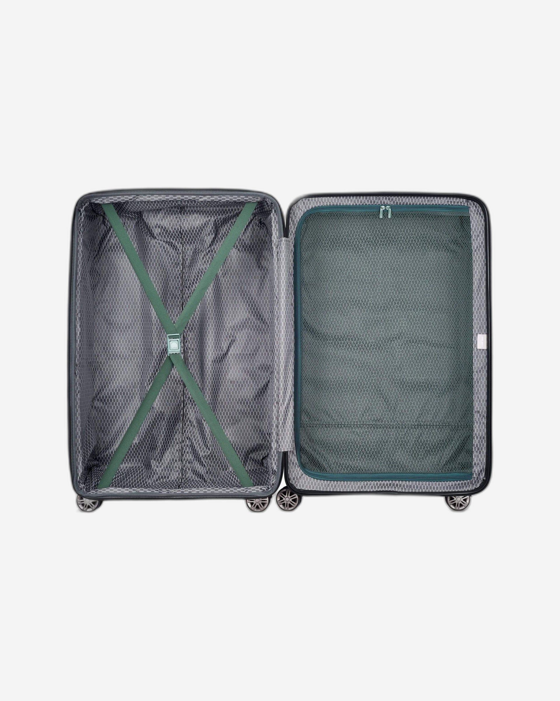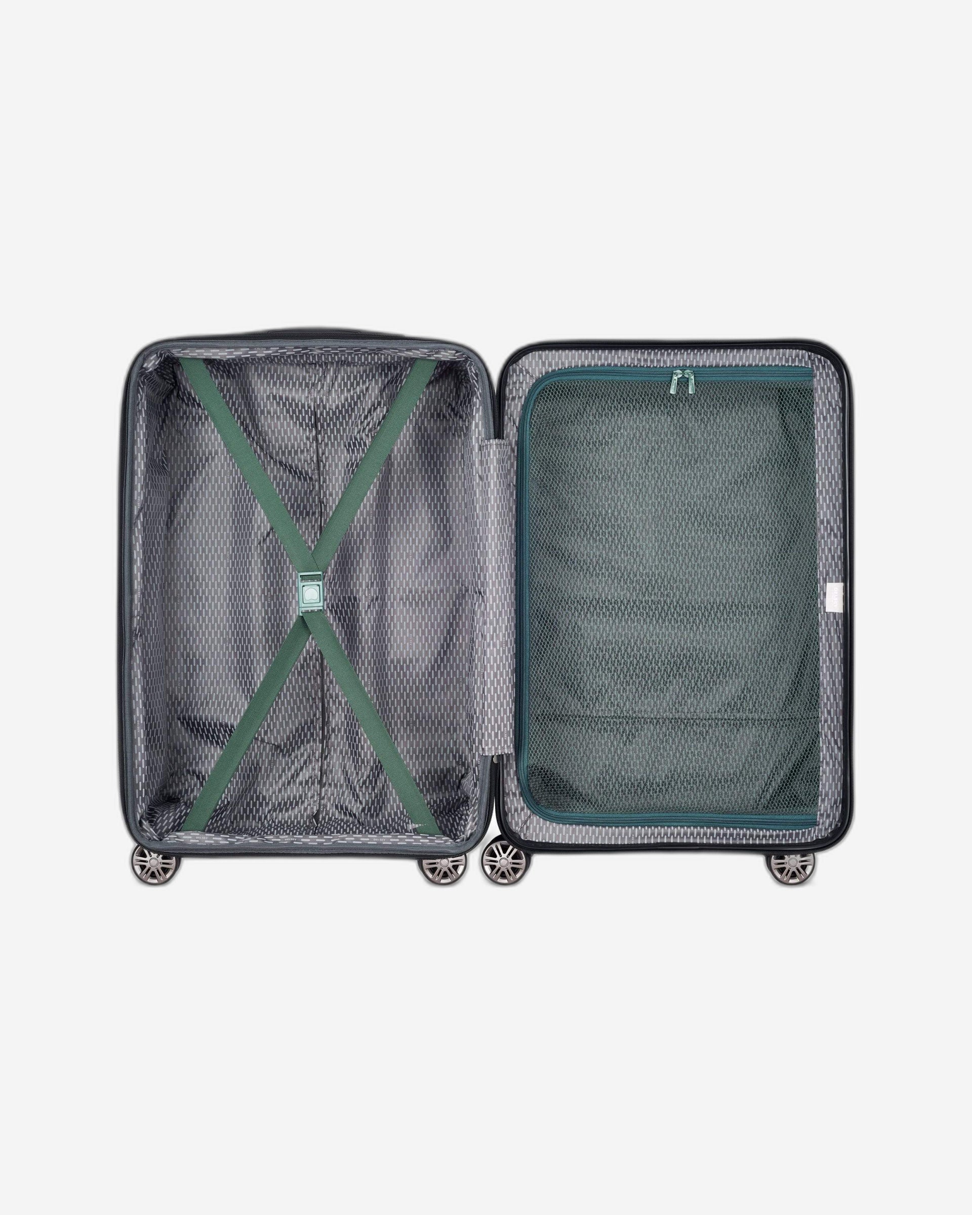 | الخارج: | * قفل مشفر من إدارة أمن النقل * نظام عربة متعدد المواضع * فتحة بسحاب * 4 عجلات مزدوجة لتحقيق الدوران الأمثل والاستقرار |