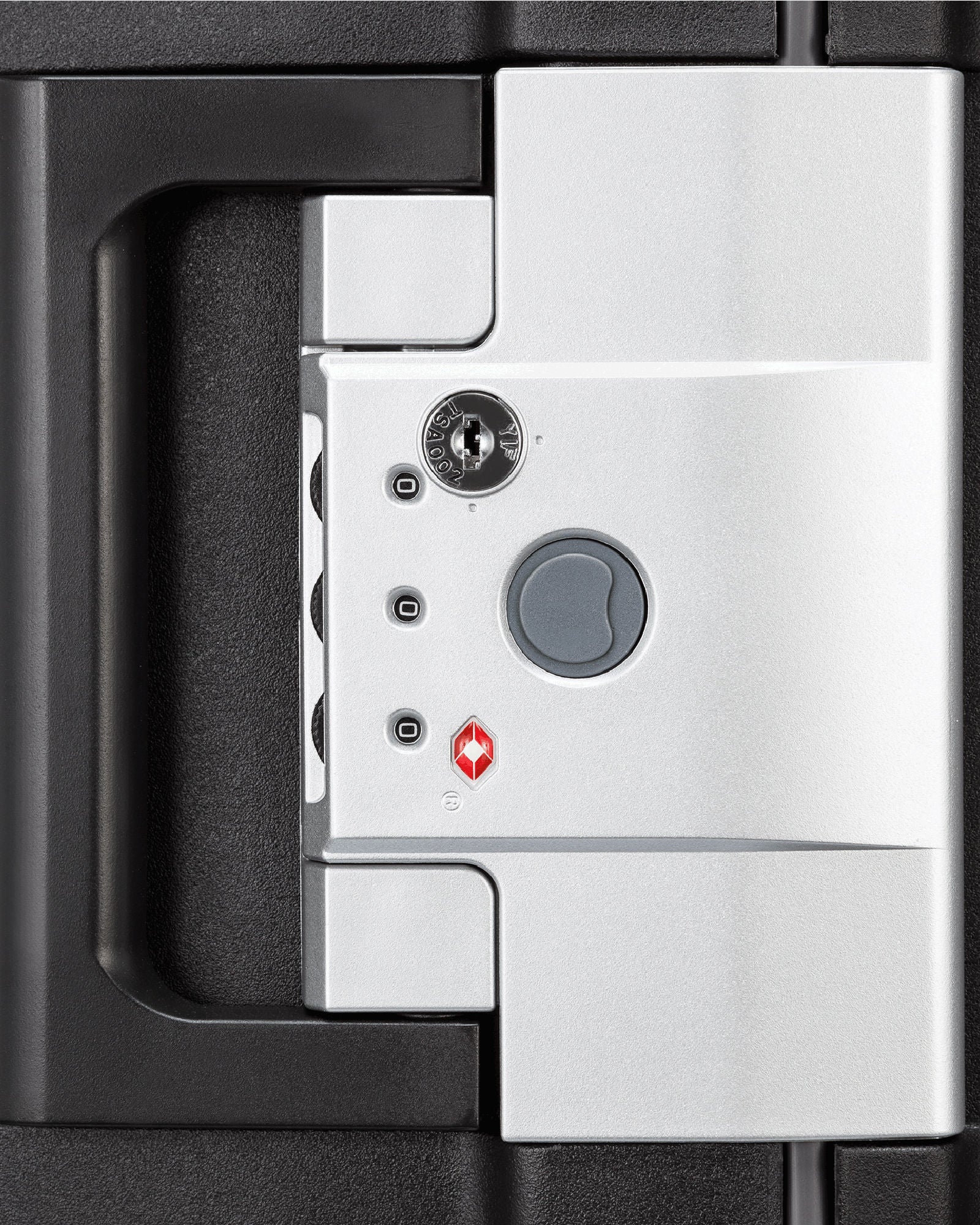 | • قفل مركب من إدارة أمن النقل • 4 عجلات مزدوجة |