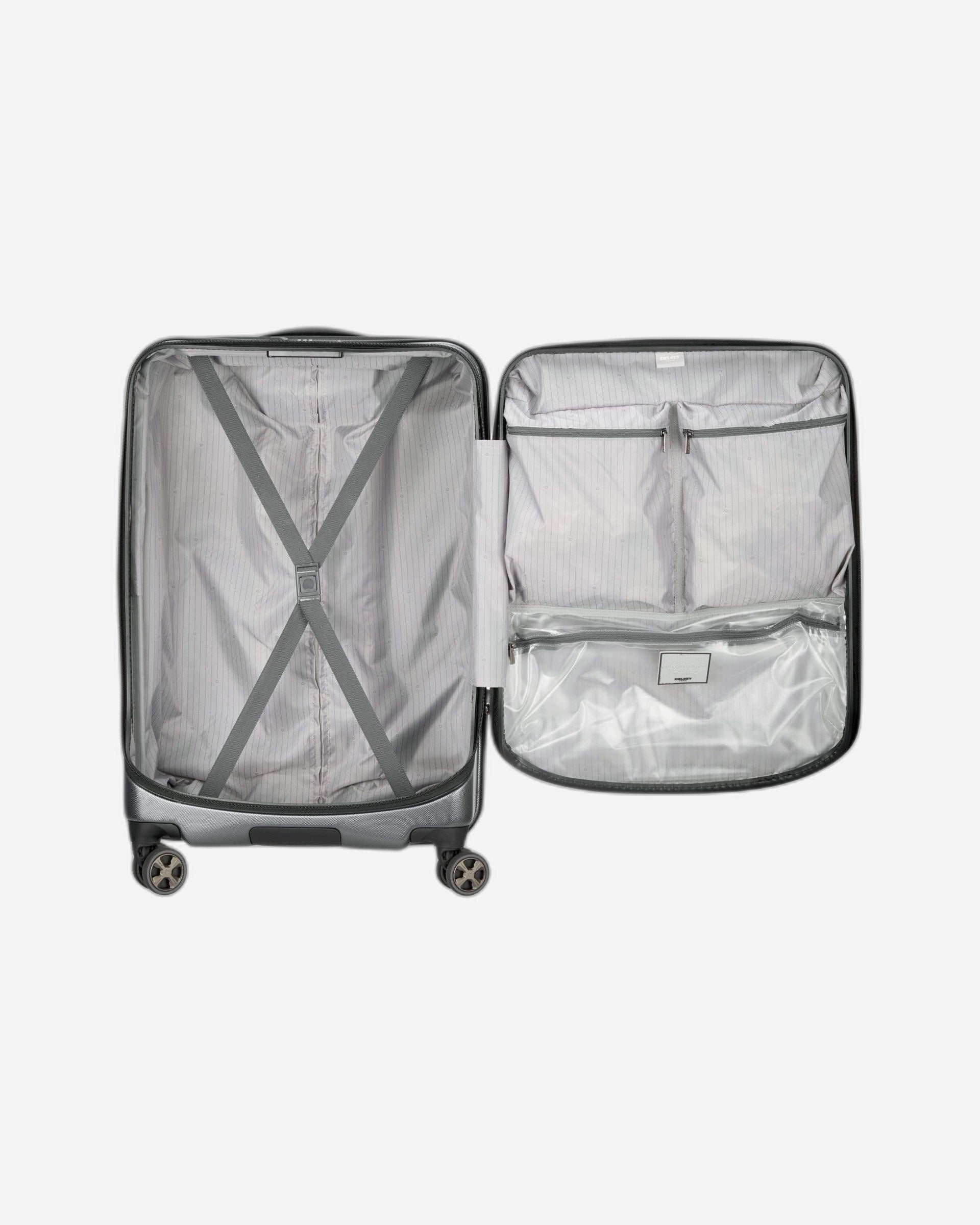 تُعيد حقيبة ديلسي باريس كروز 2.0 تعريف مفهوم السفر بحقائب صلبة بفضل فتحتها العلوية المبتكرة MaxPack™، التي تجمع بين رحابة الحقائب اللينة ومتانة الحقائب الصلبة. صُممت هذه الحقيبة القابلة للتوسيع لتوفير سفر منظم وآمن، وتتميز بأقسام مُرتبة بعناية، ومساحة تخزين مقاومة للماء، وأحزمة ربط مرنة للحفاظ على جميع الأغراض في مكانها. بفضل تقنية سحاب SECURITECH® ونظام الأمان المعتمد من إدارة أمن النقل الأمريكية (TSA)، صُممت هذه الحقيبة لتمنحك راحة البال وسهولة التنقل.