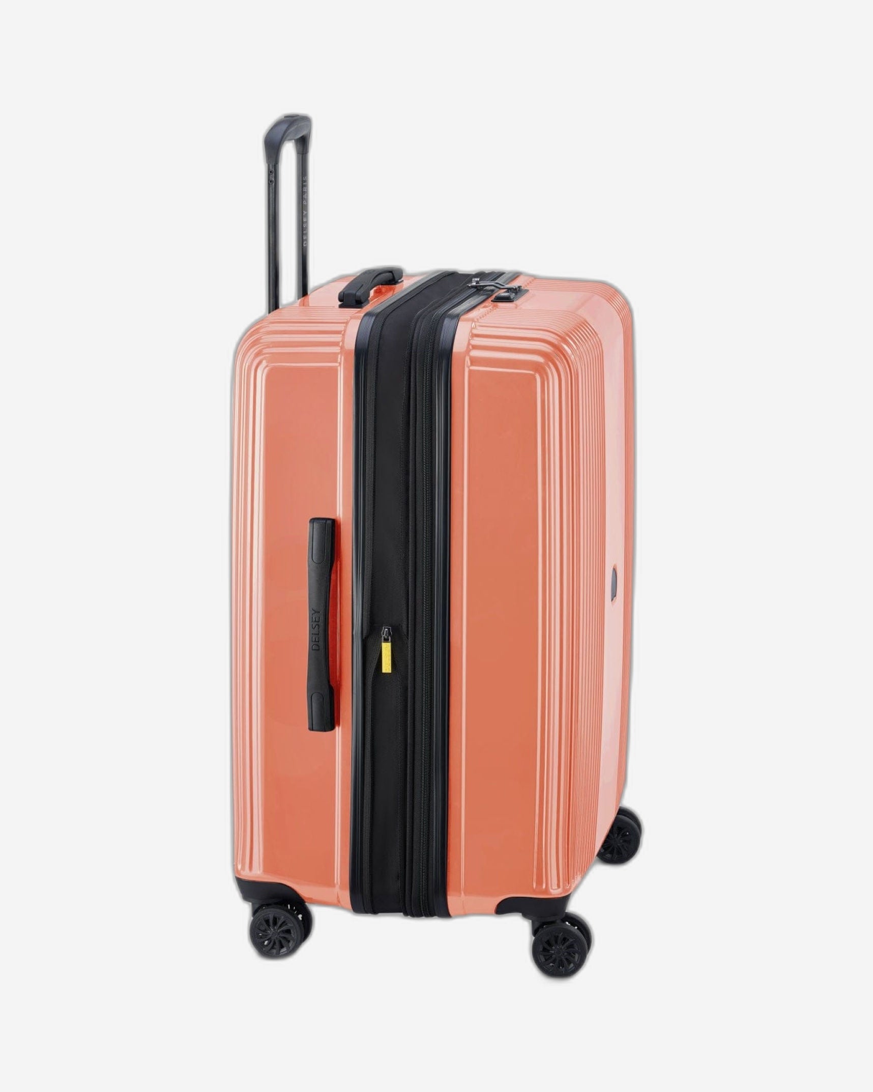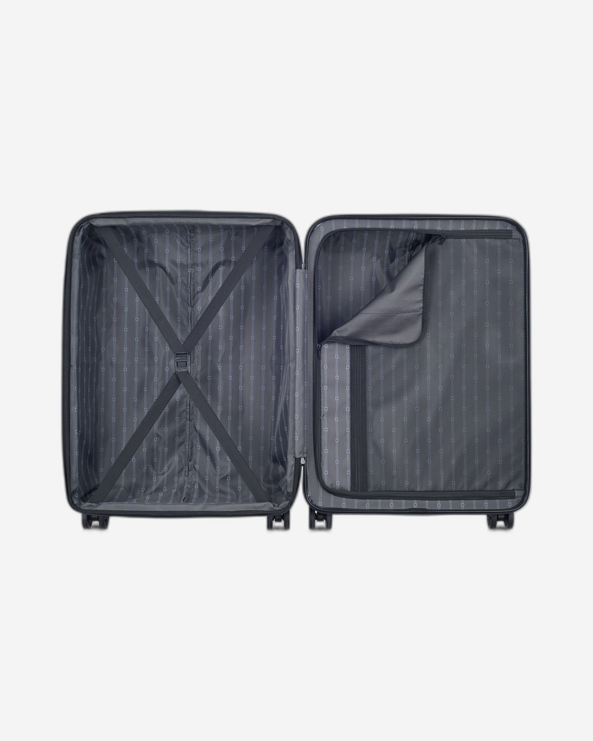 تتميز حقيبة أوفيلي بأربع عجلات مزدوجة سهلة المناورة وهادئة. متينة ومتعددة الاتجاهات، صُممت خصيصًا لتخفيف وزن الحقيبة. السفر حول العالم والتنقل عبر المطارات متعة حقيقية بفضل سهولة تحريكها. يتيح لك قفل TSA المركب تأمين أمتعتك برمزك الشخصي، بينما يسمح لهيئة سلامة النقل (TSA) بفحص أمتعتك دون إتلافها باستخدام مفتاح خاص. صُممت هذه الحقيبة خفيفة الوزن للغاية بفضل اختيار دقيق لمكوناتها. احمل جميع أمتعتك معك: هذه الحقيبة الصلبة ستحميها وتضمن لك رحلة مريحة في جميع رحلاتك.