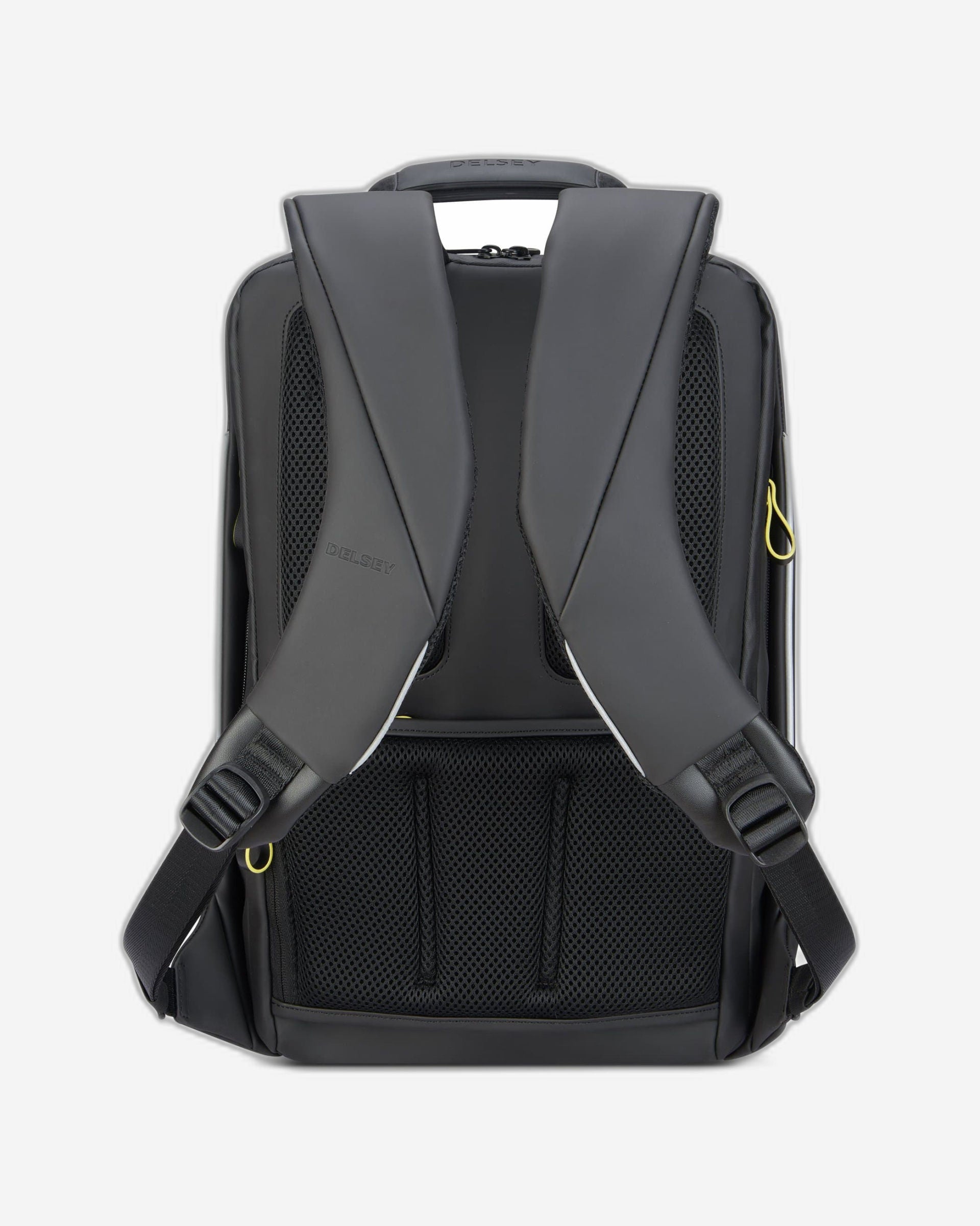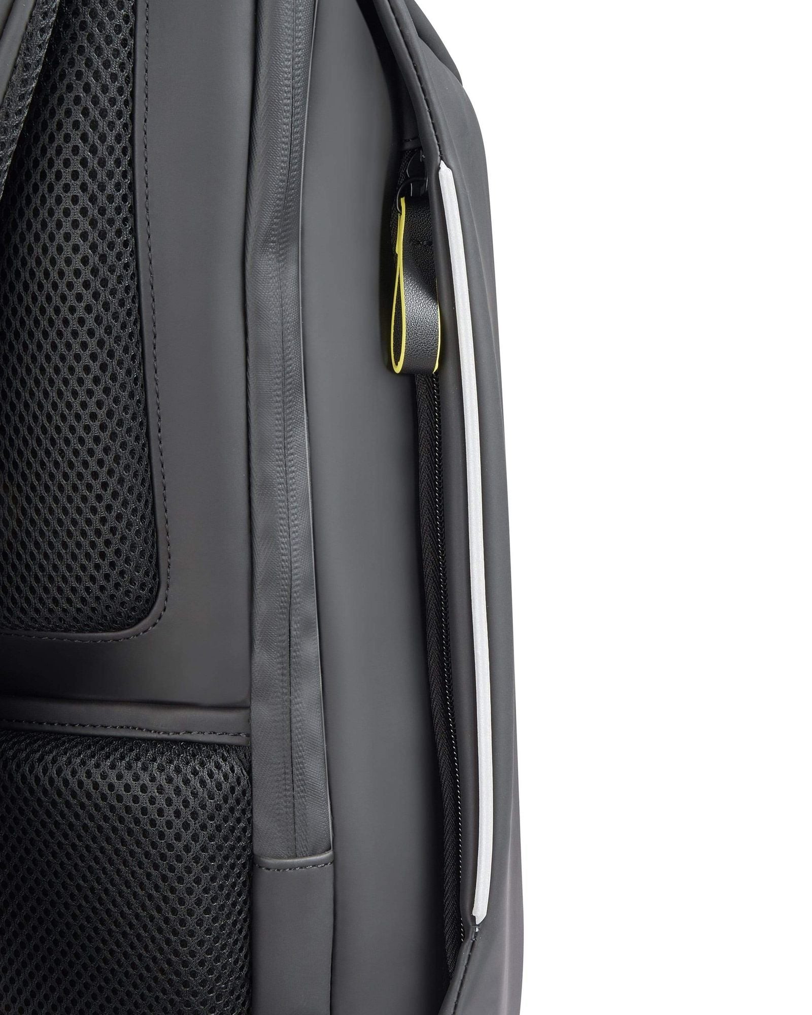 توفر حقيبة سيكيور جيبًا مبطنًا لجهاز الكمبيوتر. تحتوي هذه الحقيبة على جيب مضاد لتقنية تحديد ترددات الراديو (RFID)، مما يمنع سرقة البيانات الإلكترونية الشخصية. إنها الجيب المثالي لجميع البطاقات والهاتف! البطانة الداخلية لهذه الحقيبة مصنوعة من مادة rPET، وهي مادة مُعاد تدويرها بالكامل! كما أن معالجتها بتقنية SILVADUR™ المضادة للميكروبات تمنع نمو البكتيريا. SILVADUR™ علامة تجارية مسجلة لشركة International Flavors & Fragrances, Inc. أو الشركات التابعة لها. المادة المقاومة للماء مثالية لحماية متعلقاتك الشخصية في الأحوال الجوية السيئة! لمزيد من الراحة، صُنع الجزء الخلفي من الحقيبة والأحزمة من رغوة شبكية ثلاثية الأبعاد لراحة مثالية وتأثير مضاد للتعرق.