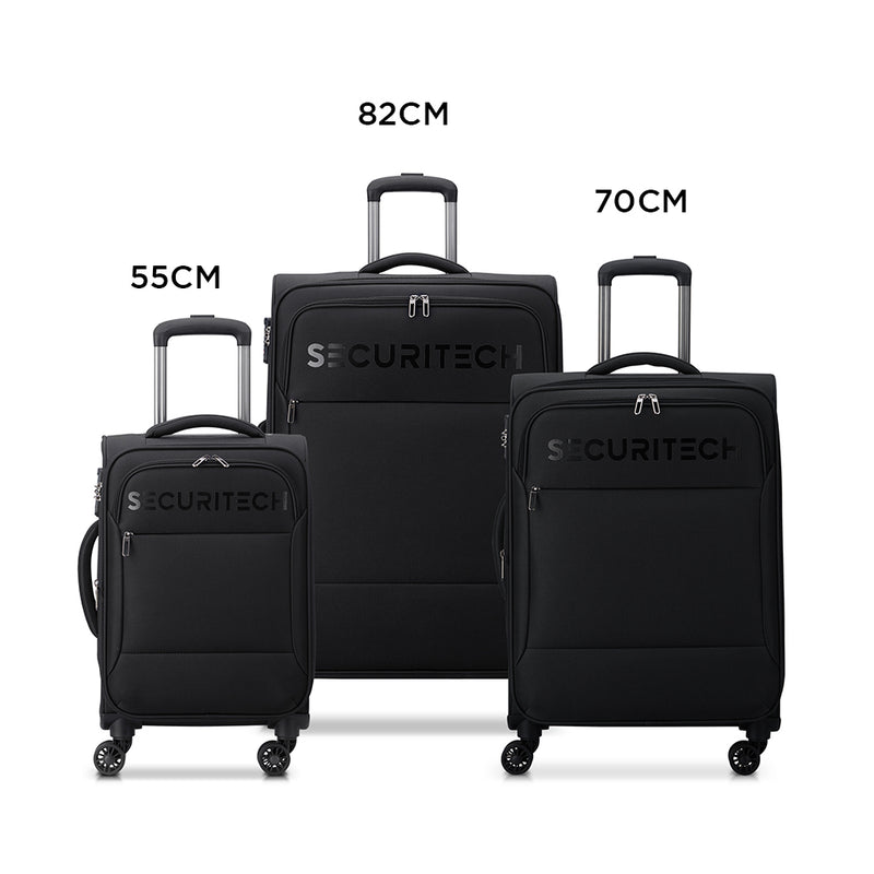 نقدم لكم مجموعة حقائب Securitech Vanguard SoftSided - مثالية للمسافرين الذين يرغبون في حمل أمتعة متوسطة الحجم! فهي خفيفة الوزن ومزوّدة بعجلتين لسهولة الحركة. كما أنها مصنوعة من مواد خفيفة الوزن ومزوّدة بقفل TSA مدمج لمزيد من الأمان.